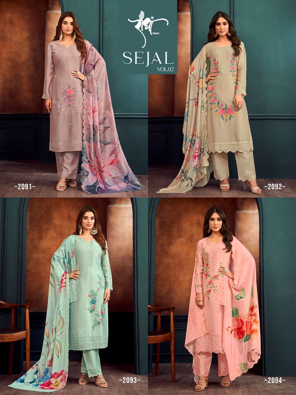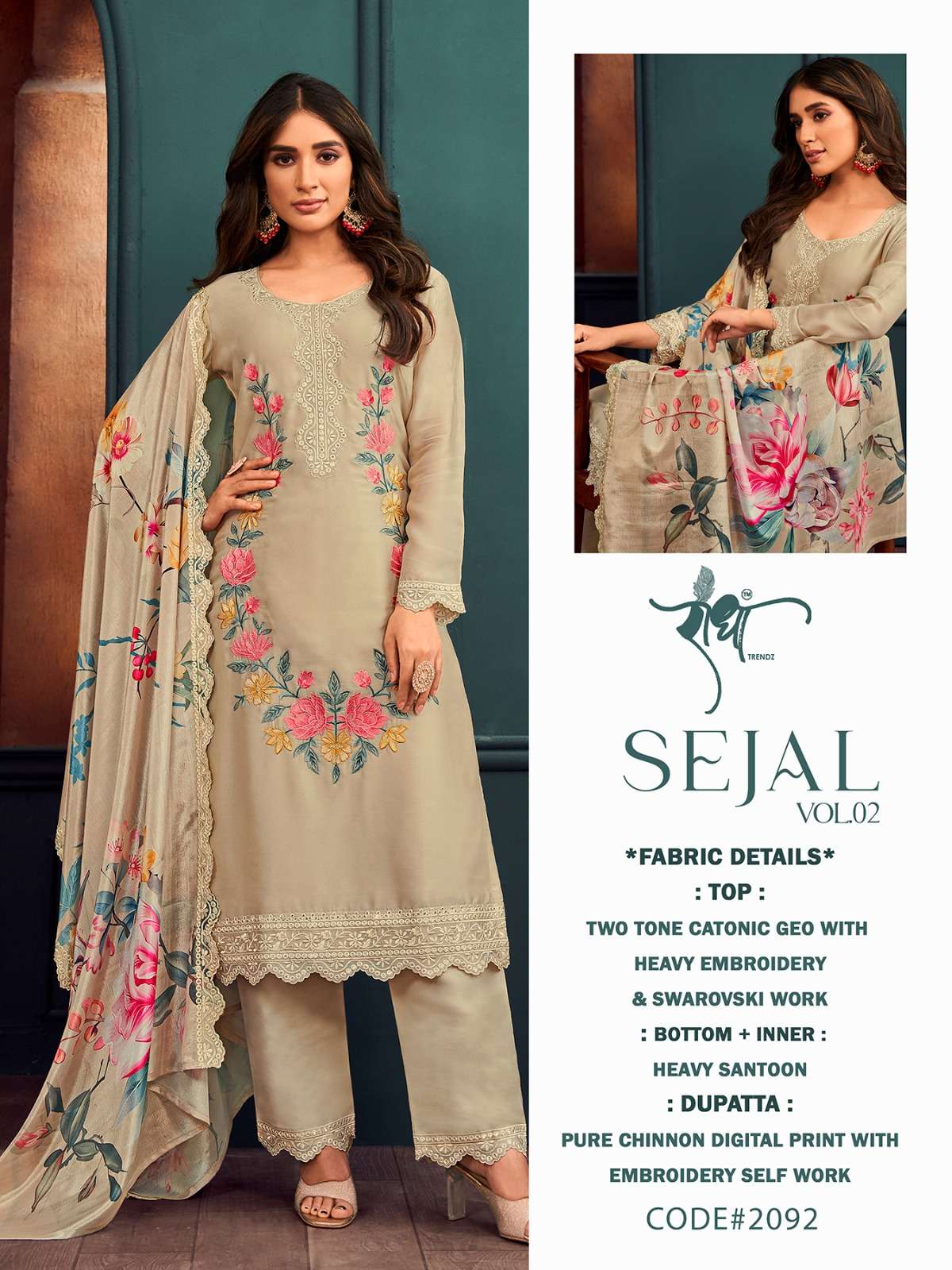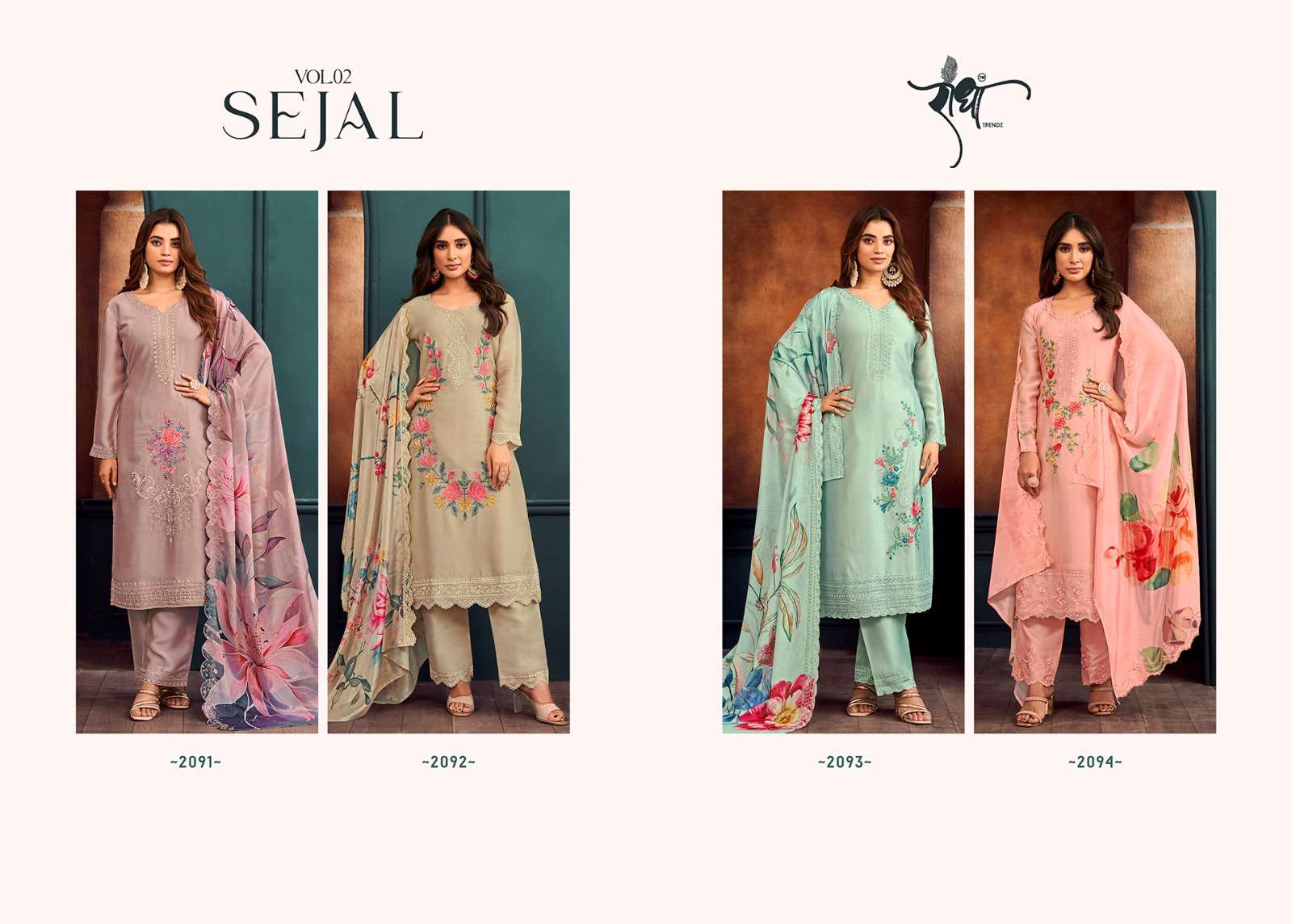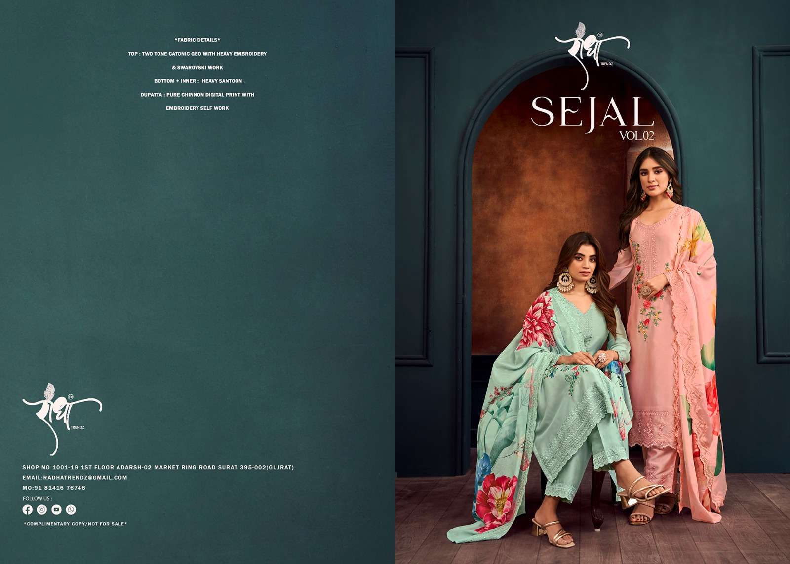 Buy Online SEJAL vol -2 by radha trends suit wholesale 4 Pcs of Full Catalogue at Wholesale Price. Looking for SEJAL vol -2 by radha trends suit wholesale Full Catalouge at Best Price? Buy Now SEJAL vol -2 by radha trends suit wholesale at Wholesale Rate of Rs 5980 with Total 4 Pcs from authroized dealer and supplier of RADHAK FASHION Brand. Cost of Each piece is just only Rs 1495 which is very low and affordable price to resale the product in your retail store ,This is Surat based Wholesale Supplier & Dealer of RADHAK FASHION Brand. Click on Brand name to Know more about RADHAK FASHION Brand's products.Call or Whatsapp on 9898838984 for booking or enquiry