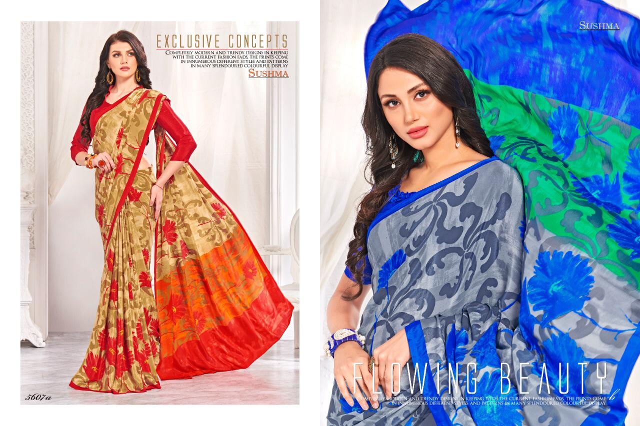 Buy Online Selfy Crape By Sushma Crepe Printed Sarees Wholesale Supplier And Dealer Surat 20 Pcs of Full Catalogue at Wholesale Price. Looking for Selfy Crape By Sushma Crepe Printed Sarees Wholesale Supplier And Dealer Surat Full Catalouge at Best Price? Buy Now Selfy Crape By Sushma Crepe Printed Sarees Wholesale Supplier And Dealer Surat at Wholesale Rate of Rs 12100 with Total 20 Pcs from authroized dealer and supplier of SUSHMA Brand. Cost of Each piece is just only Rs 605 which is very low and affordable price to resale the product in your retail store ,This is Surat based Wholesale Supplier & Dealer of SUSHMA Brand. Click on Brand name to Know more about SUSHMA Brand's products.Call or Whatsapp on 9898838984 for booking or enquiry