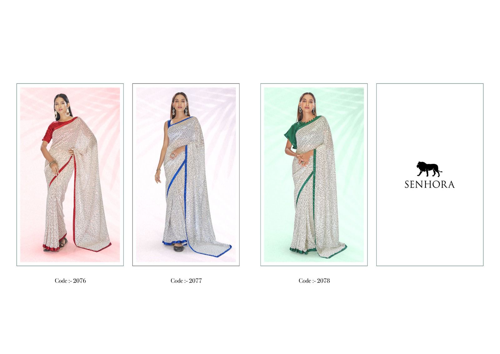 Buy Online Senhora Rooh Party Wear Saree 3 Pcs of Full Catalogue at Wholesale Price. Looking for Senhora Rooh Party Wear Saree Full Catalouge at Best Price? Buy Now Senhora Rooh Party Wear Saree at Wholesale Rate of Rs 5850 with Total 3 Pcs from authroized dealer and supplier of Brand. Cost of Each piece is just only Rs 1950 which is very low and affordable price to resale the product in your retail store ,This is Surat based Wholesale Supplier & Dealer of Brand. Click on Brand name to Know more about Brand's products.Call or Whatsapp on 9898838984 for booking or enquiry
