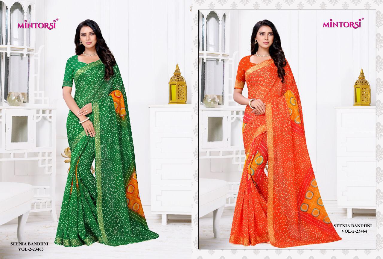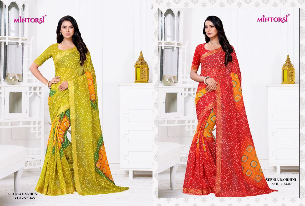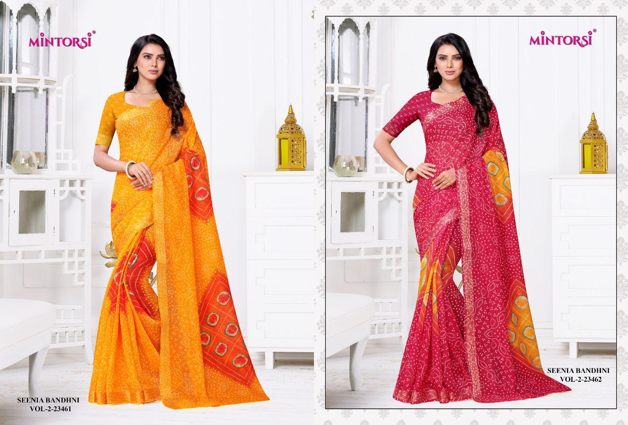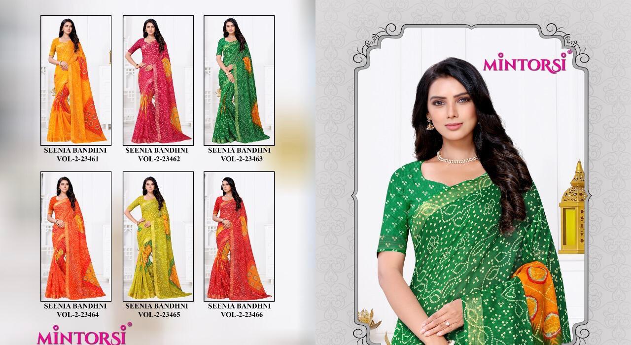 Buy Online Senia Bandhni Vol 2 By Mintorsi Single Available Manufacturer Traders Surat 6 Pcs of Full Catalogue at Wholesale Price. Looking for Senia Bandhni Vol 2 By Mintorsi Single Available Manufacturer Traders Surat Full Catalouge at Best Price? Buy Now Senia Bandhni Vol 2 By Mintorsi Single Available Manufacturer Traders Surat at Wholesale Rate of Rs 2970 with Total 6 Pcs from authroized dealer and supplier of Brand. Cost of Each piece is just only Rs 495 which is very low and affordable price to resale the product in your retail store ,This is Surat based Wholesale Supplier & Dealer of Brand. Click on Brand name to Know more about Brand's products.Call or Whatsapp on 9898838984 for booking or enquiry