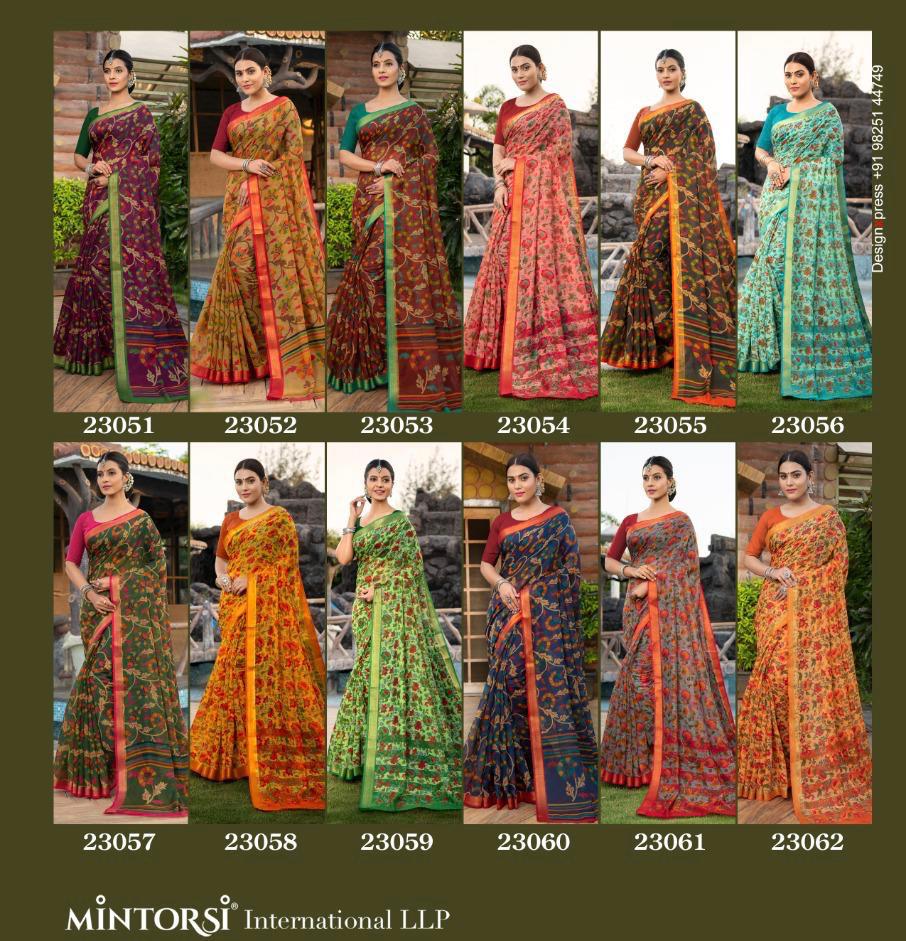 Buy Online Senia Cotton 2 By Mintorsi Designer Sarees Wholesaler 12 Pcs of Full Catalogue at Wholesale Price. Looking for Senia Cotton 2 By Mintorsi Designer Sarees Wholesaler Full Catalouge at Best Price? Buy Now Senia Cotton 2 By Mintorsi Designer Sarees Wholesaler at Wholesale Rate of Rs 5940 with Total 12 Pcs from authroized dealer and supplier of Mintorsi Brand. Cost of Each piece is just only Rs 495 which is very low and affordable price to resale the product in your retail store ,This is Surat based Wholesale Supplier & Dealer of Mintorsi Brand. Click on Brand name to Know more about Mintorsi Brand's products.Call or Whatsapp on 9898838984 for booking or enquiry