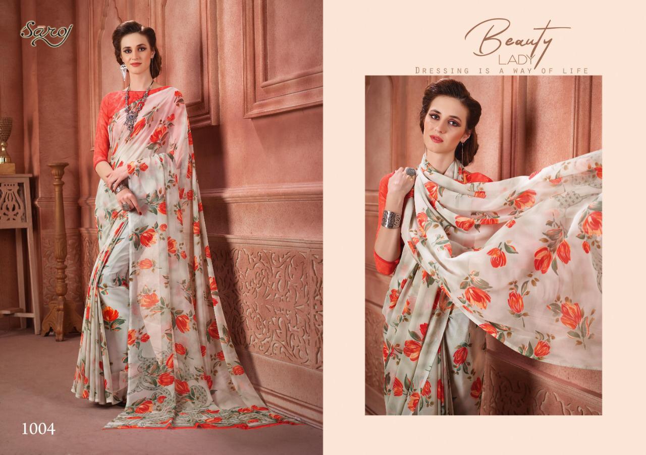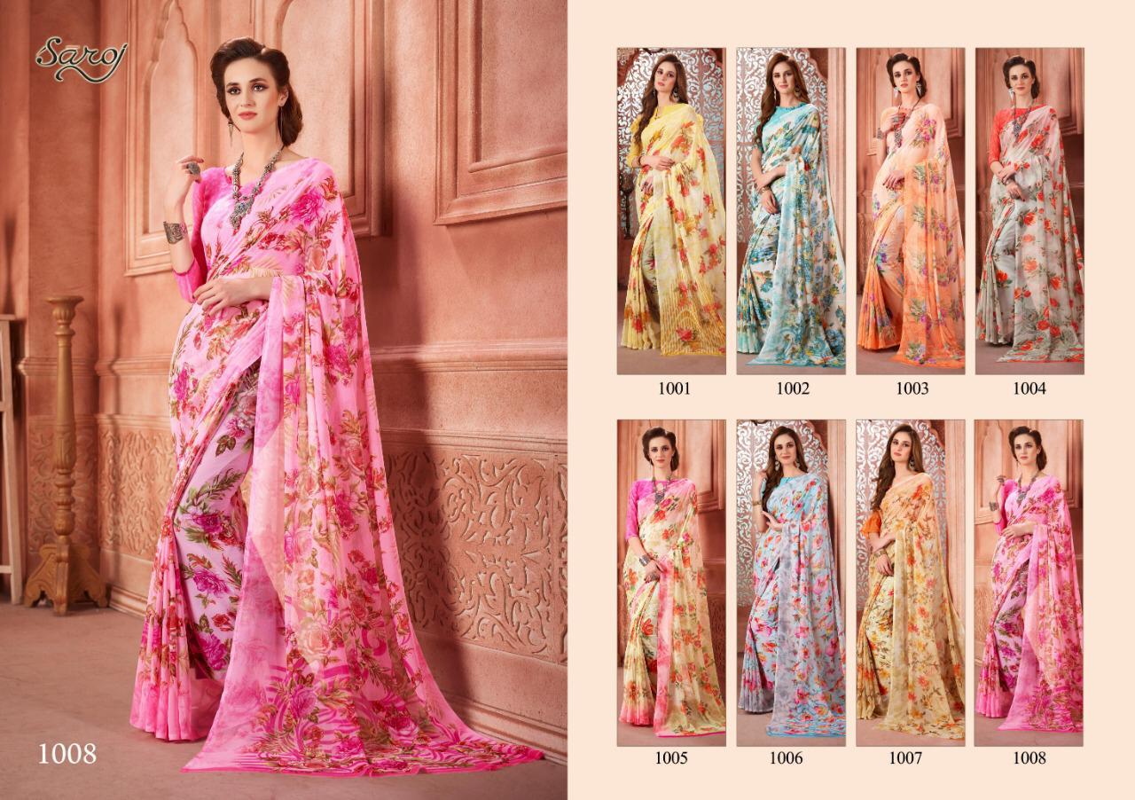 Buy Online Senorita By Saroj Georgette Sarees Wholesale Supplier Gujarat 8 Pcs of Full Catalogue at Wholesale Price. Looking for Senorita By Saroj Georgette Sarees Wholesale Supplier Gujarat Full Catalouge at Best Price? Buy Now Senorita By Saroj Georgette Sarees Wholesale Supplier Gujarat at Wholesale Rate of Rs 4360 with Total 8 Pcs from authroized dealer and supplier of SAROJ SAREE Brand. Cost of Each piece is just only Rs 545 which is very low and affordable price to resale the product in your retail store ,This is Surat based Wholesale Supplier & Dealer of SAROJ SAREE Brand. Click on Brand name to Know more about SAROJ SAREE Brand's products.Call or Whatsapp on 9898838984 for booking or enquiry
