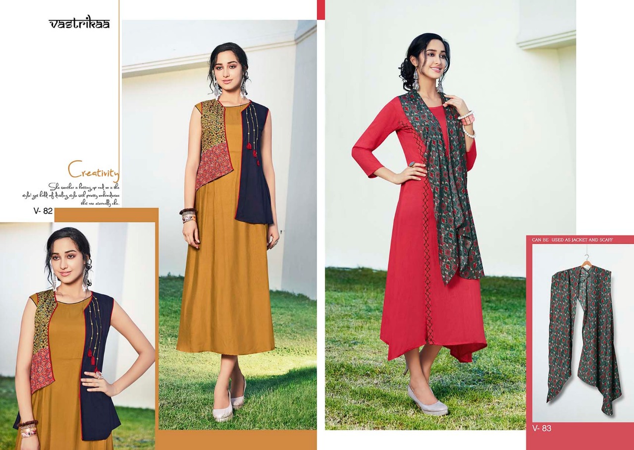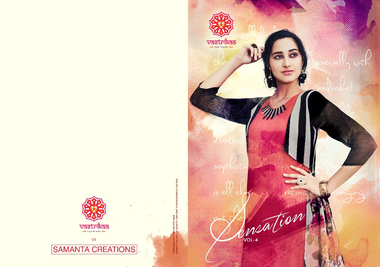 Buy Online Sensation Vol 4 By Vastrikaa Fancy Reyon Kurtis Wholesale Supplier And Dealer Gujarat 6 Pcs of Full Catalogue at Wholesale Price. Looking for Sensation Vol 4 By Vastrikaa Fancy Reyon Kurtis Wholesale Supplier And Dealer Gujarat Full Catalouge at Best Price? Buy Now Sensation Vol 4 By Vastrikaa Fancy Reyon Kurtis Wholesale Supplier And Dealer Gujarat at Wholesale Rate of Rs 4380 with Total 6 Pcs from authroized dealer and supplier of VASTRIKAA Brand. Cost of Each piece is just only Rs 730 which is very low and affordable price to resale the product in your retail store ,This is Surat based Wholesale Supplier & Dealer of VASTRIKAA Brand. Click on Brand name to Know more about VASTRIKAA Brand's products.Call or Whatsapp on 9898838984 for booking or enquiry