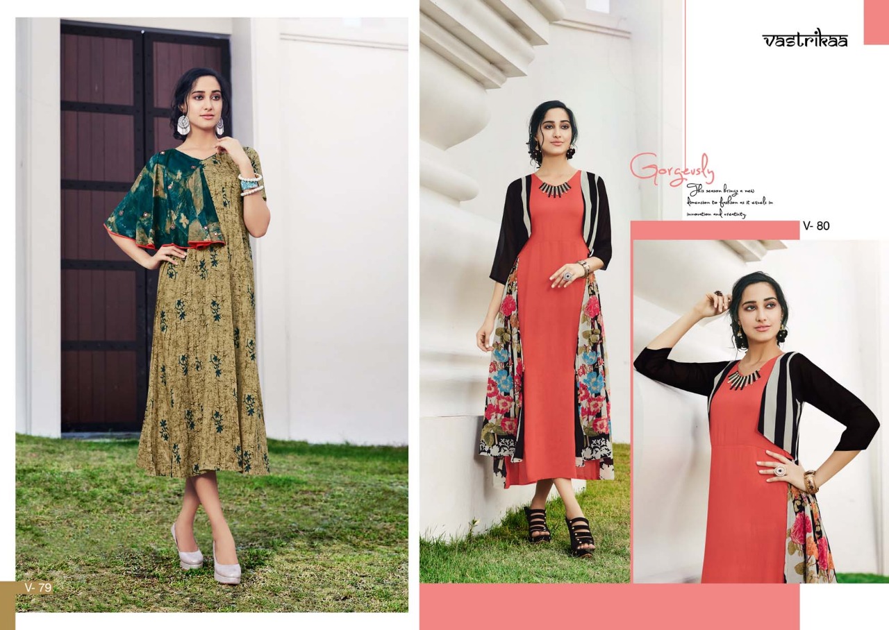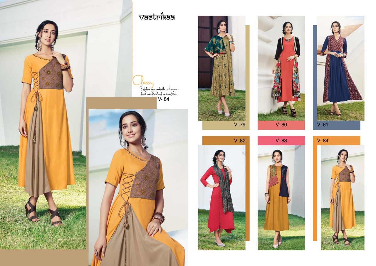 Sensation Vol 4 By Vastrikaa Fancy Reyon Kurtis Wholesale Supplier And Dealer Gujarat