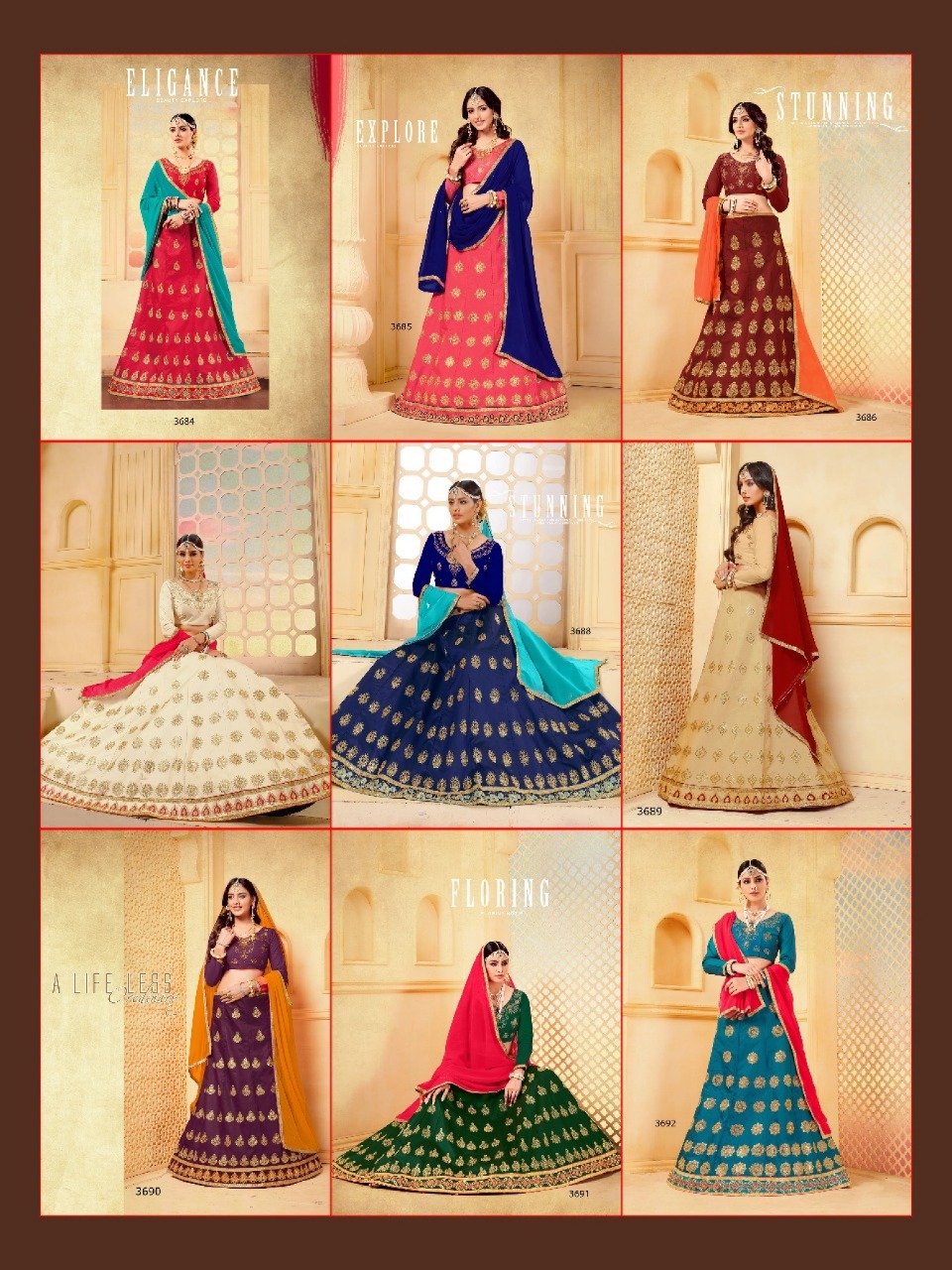 Sequence By Sanskar Style Series 3684 To 3692 Silk Designer Wedding Wear Lehngas Wholesale Supplier Gujarat