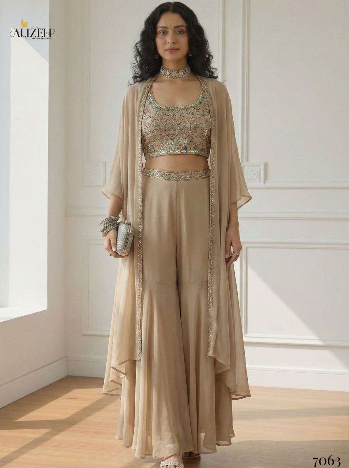 7063- Georgette Blouse, Sharara & Cape With Santoon Inner