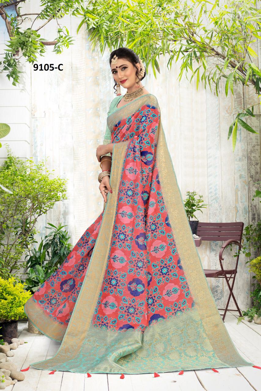 NEW CATALOG: 9105 by NP -with color FABRICS: Cottan weaving saree with Digital Printed Rich Pallu And BROCKED Blouse RATE : 1295 per PCs . * set & loose & Singel * WEIGHT: 500 GRAM Delivery from today READY STOCK: Banarasi with digital 100+ singles |