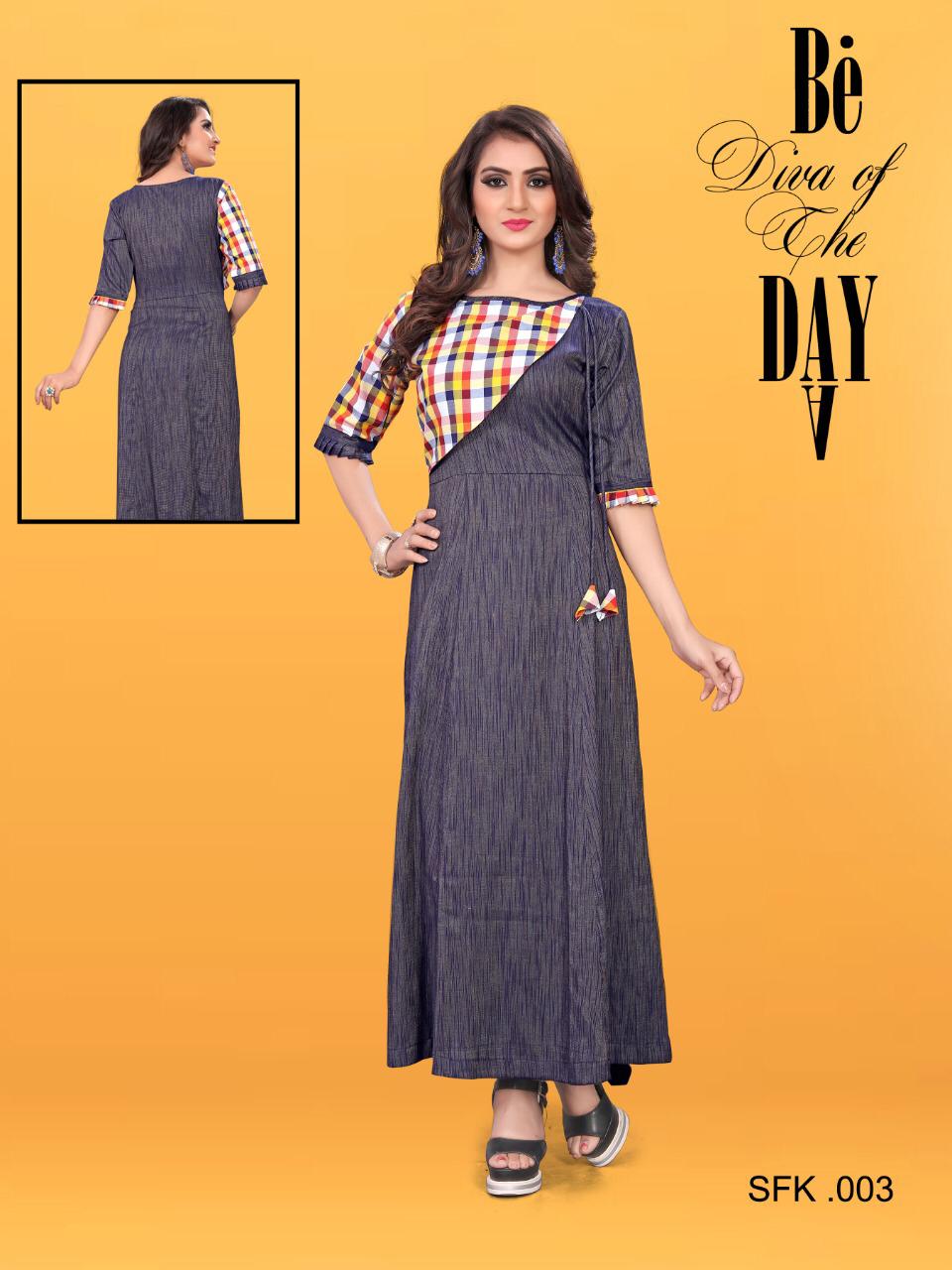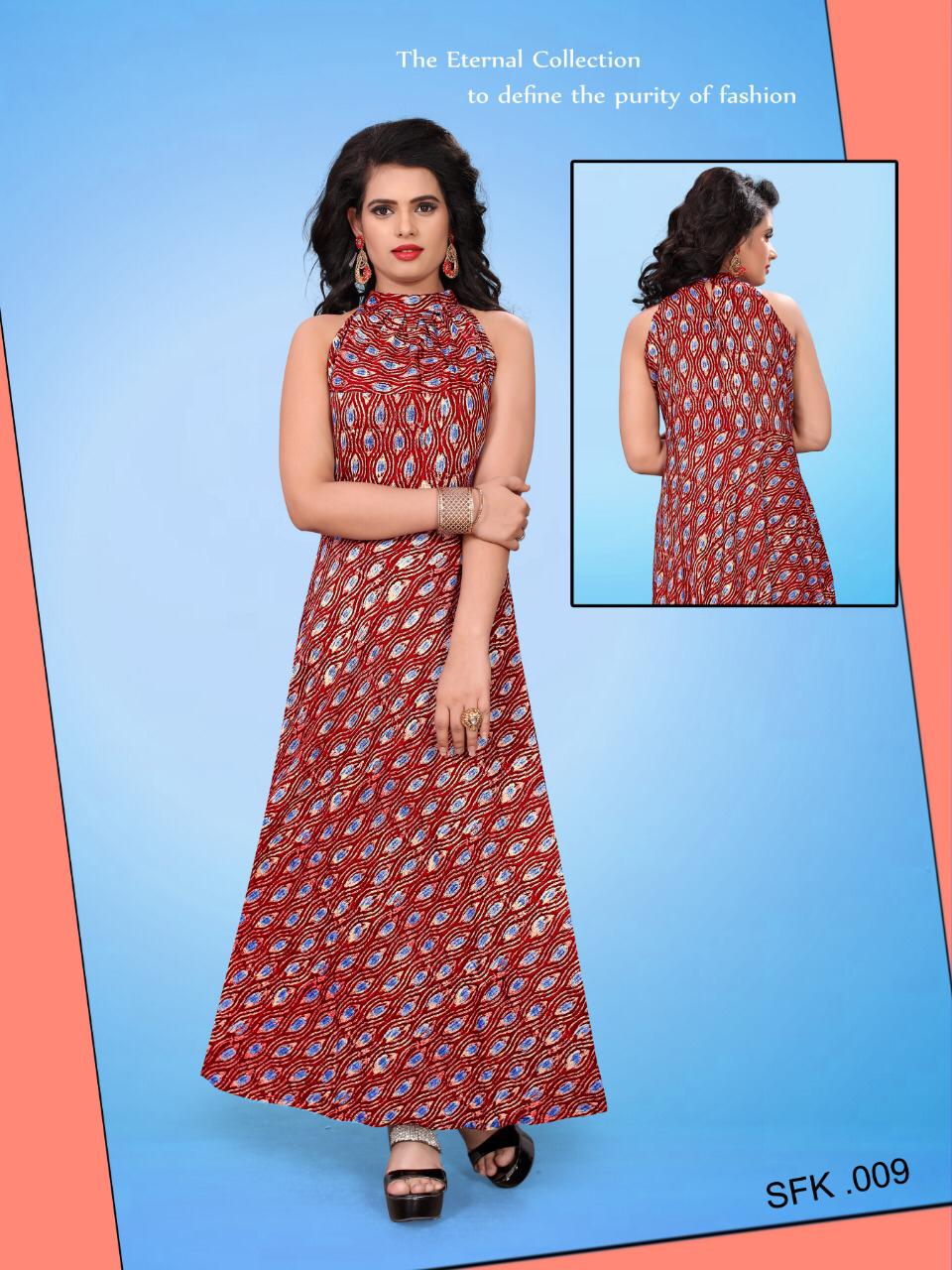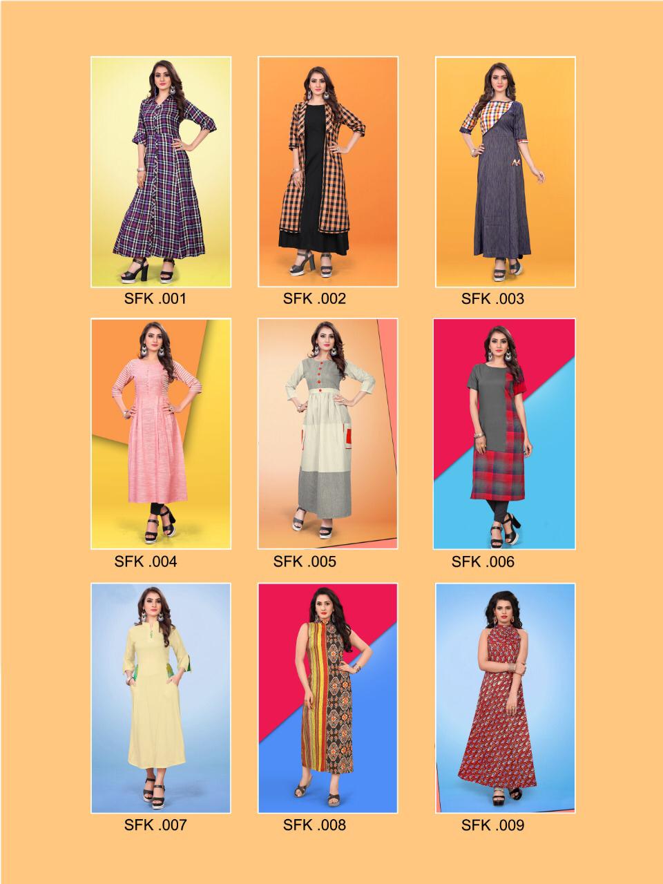 Buy Online Sfk 001 To Sfk 009 Series By Str Fancy Reyon Printed Kurti Collection Wholesaler Surat 9 Pcs of Full Catalogue at Wholesale Price. Looking for Sfk 001 To Sfk 009 Series By Str Fancy Reyon Printed Kurti Collection Wholesaler Surat Full Catalouge at Best Price? Buy Now Sfk 001 To Sfk 009 Series By Str Fancy Reyon Printed Kurti Collection Wholesaler Surat at Wholesale Rate of Rs 6183 with Total 9 Pcs from authroized dealer and supplier of Brand. Cost of Each piece is just only Rs 687 which is very low and affordable price to resale the product in your retail store ,This is Surat based Wholesale Supplier & Dealer of Brand. Click on Brand name to Know more about Brand's products.Call or Whatsapp on 9898838984 for booking or enquiry