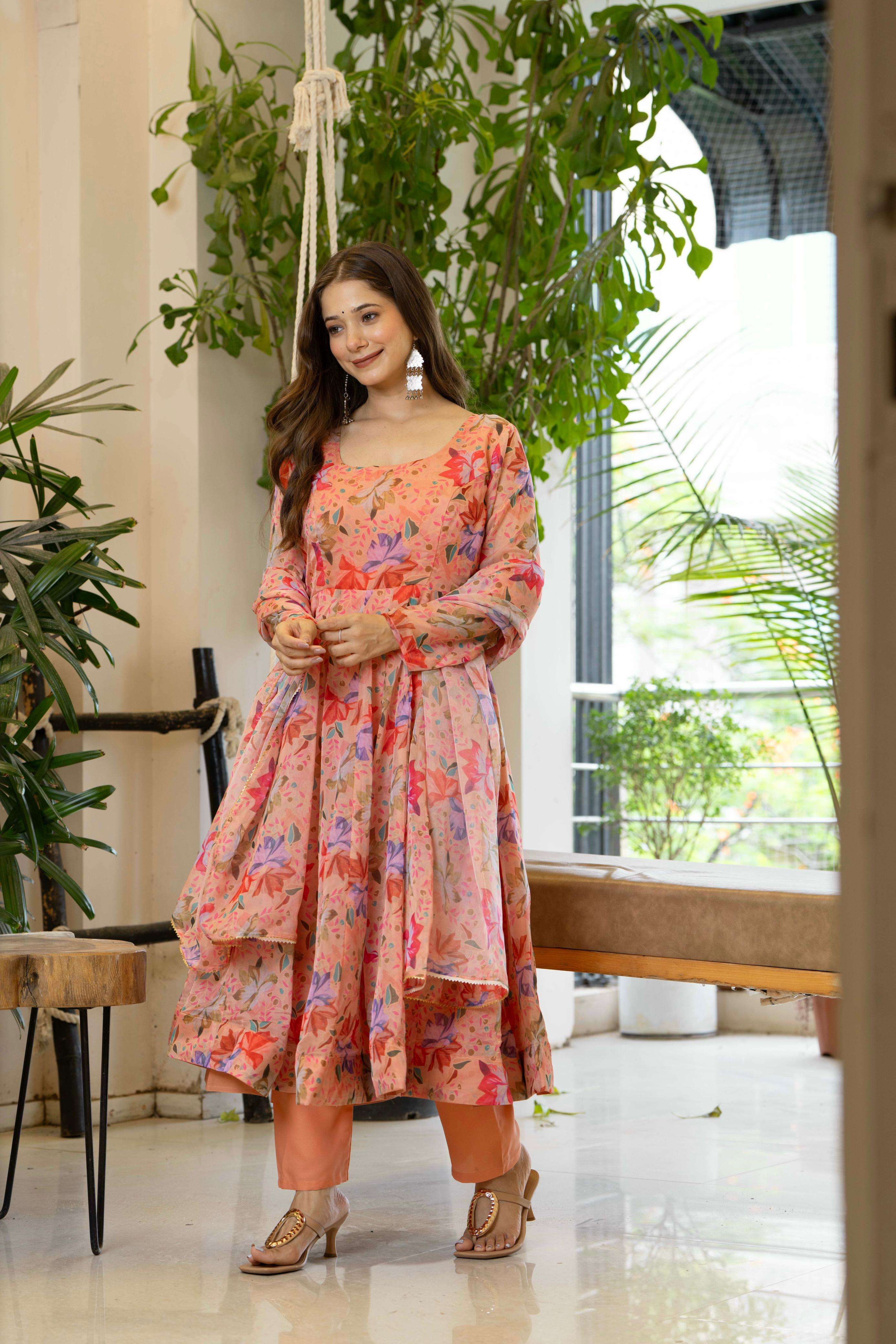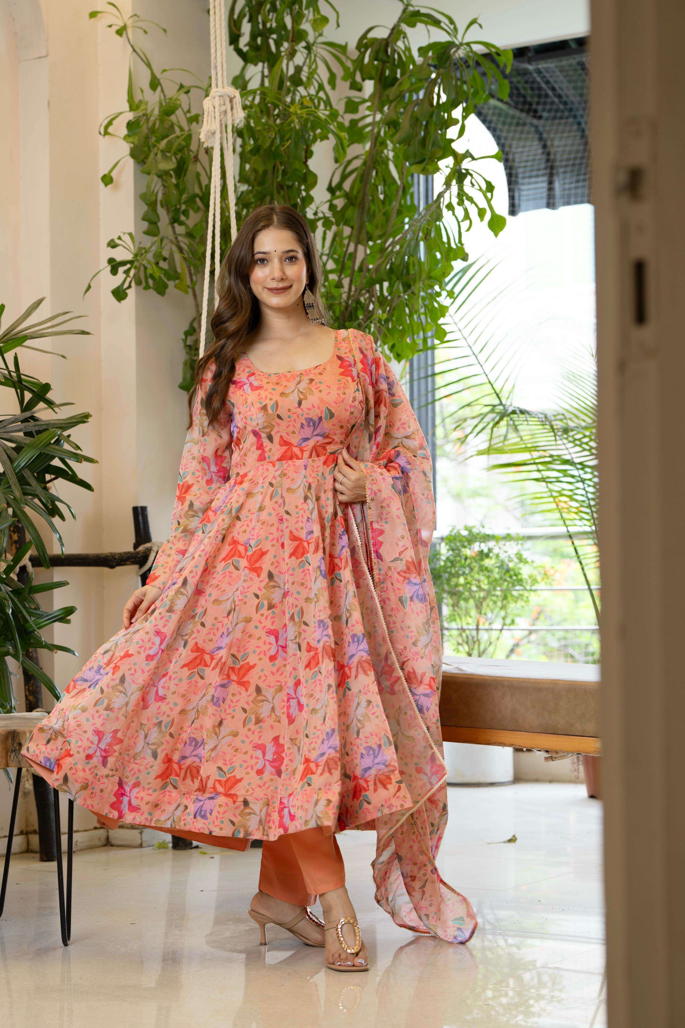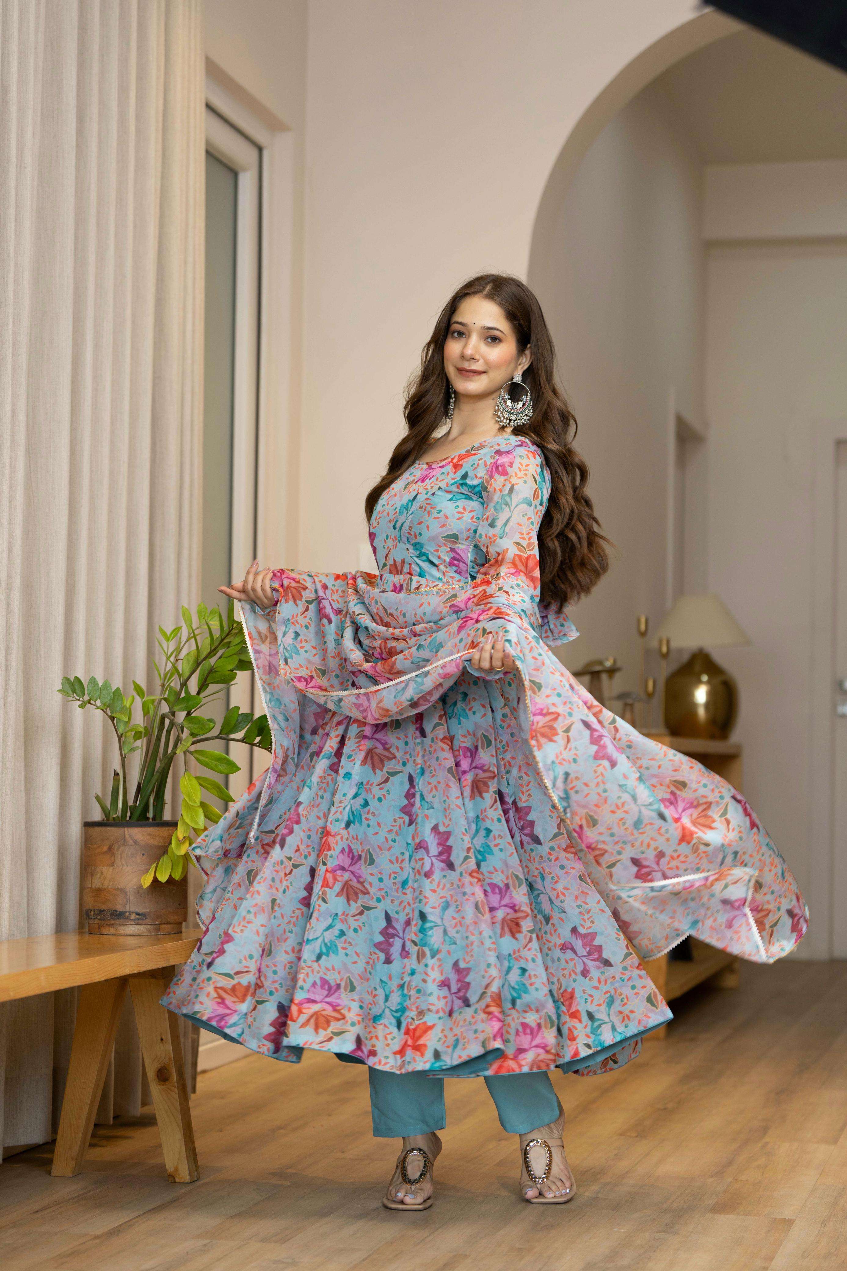 *SGF-18* *ANARKALI FABRIC*:PURE SOFT LIGHTWEIGHT ORGANZA FLORAL PRINT FABRIC INNER MICRO COTTON