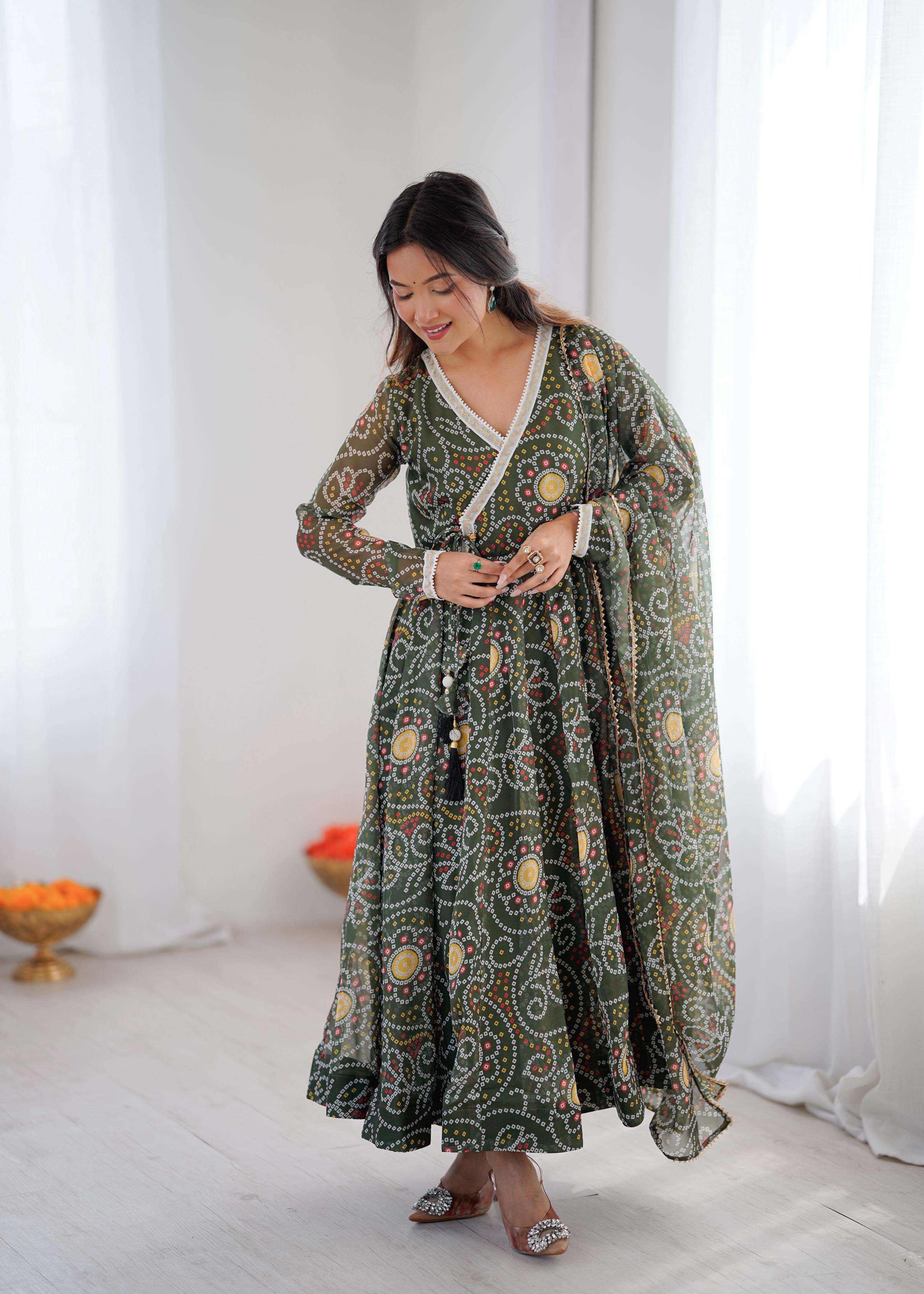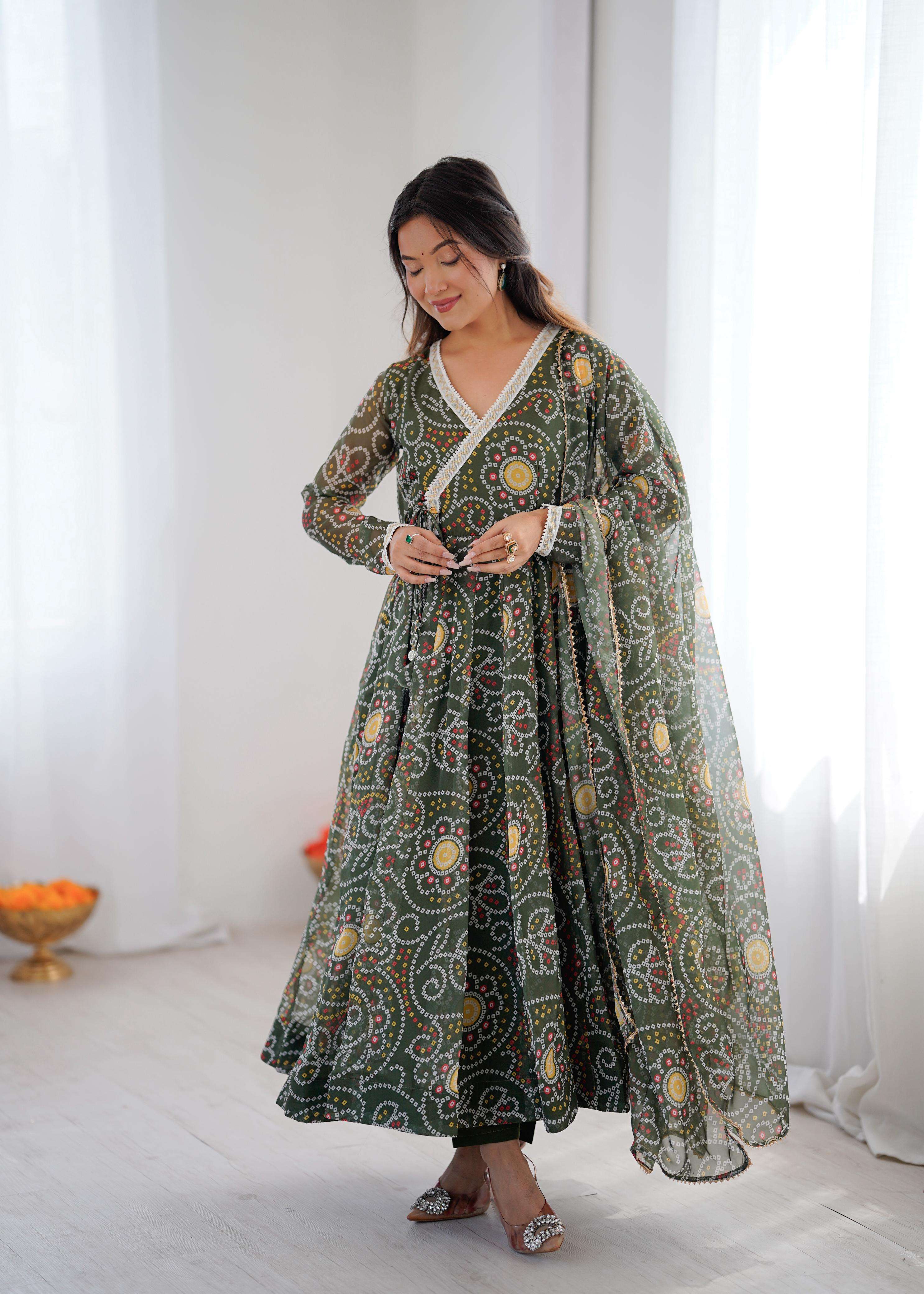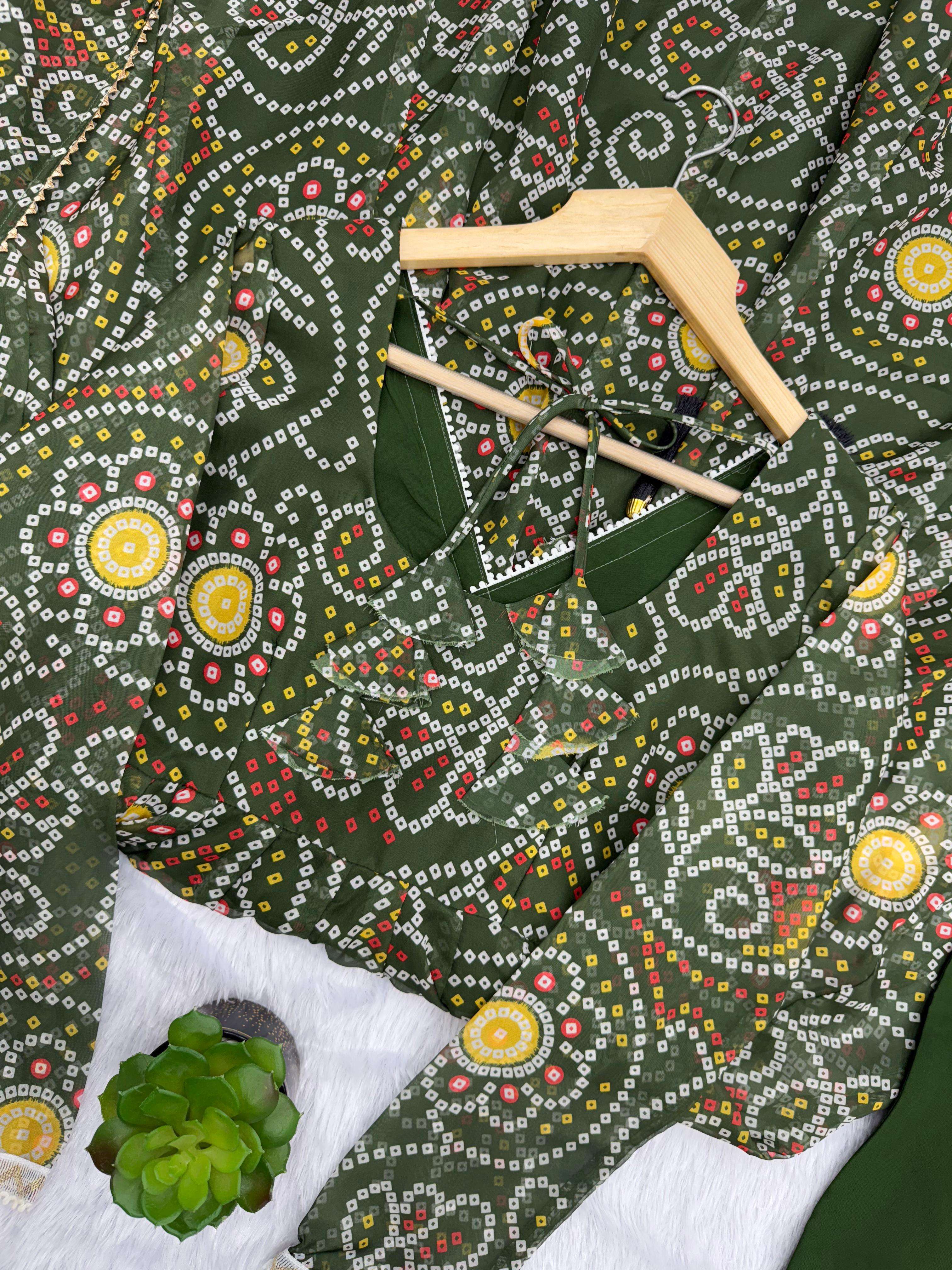 *TOP:-* 🌸*FABRIC*: PRINTED GEORGETTE ☘️*WORK*: READY MADE LACE ON NECKLINE *FLAIR*: APPROX 4 METERS FLAIR *INNER*: MICRO COTTON *LENGTH*:48"-49"Inch