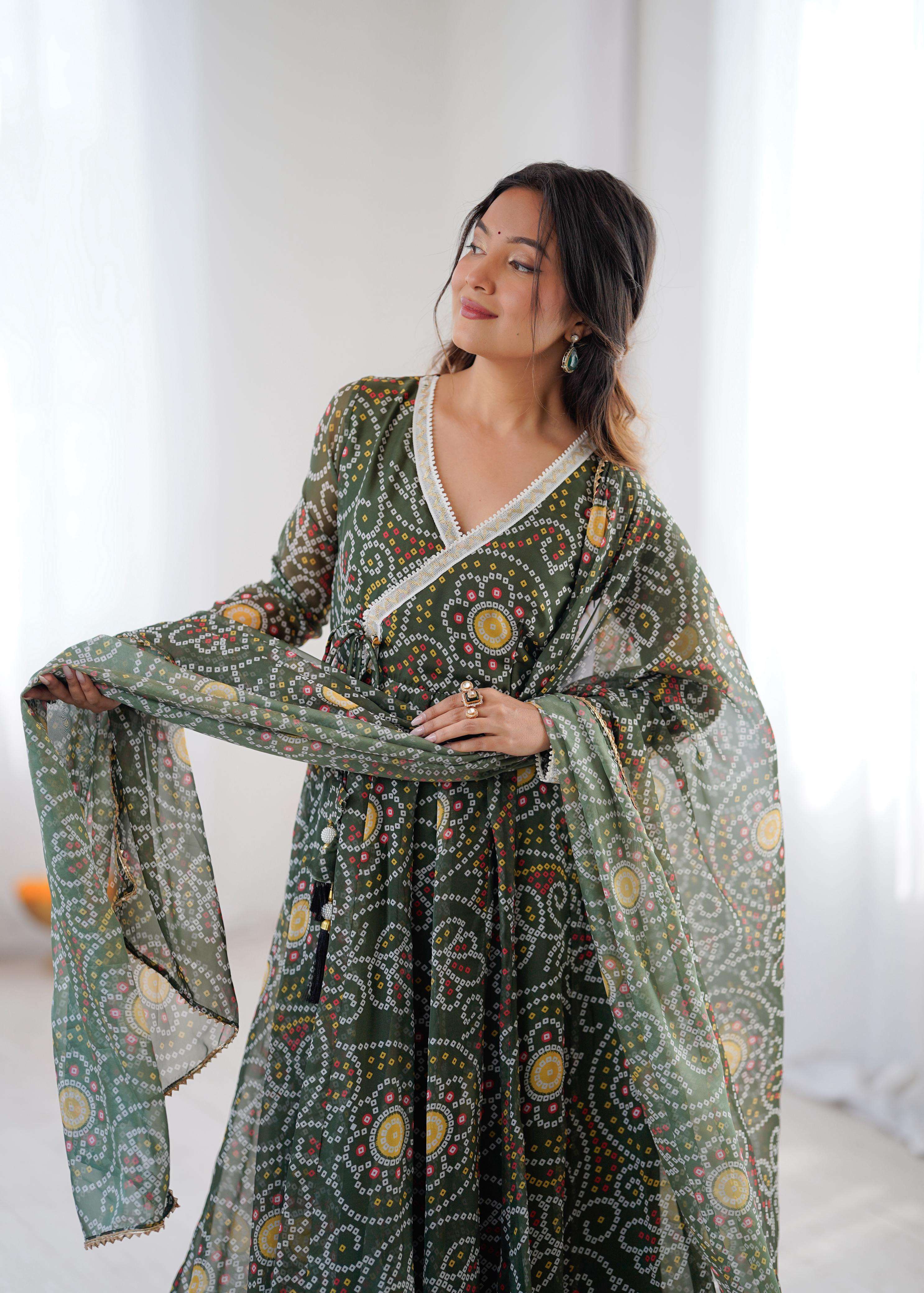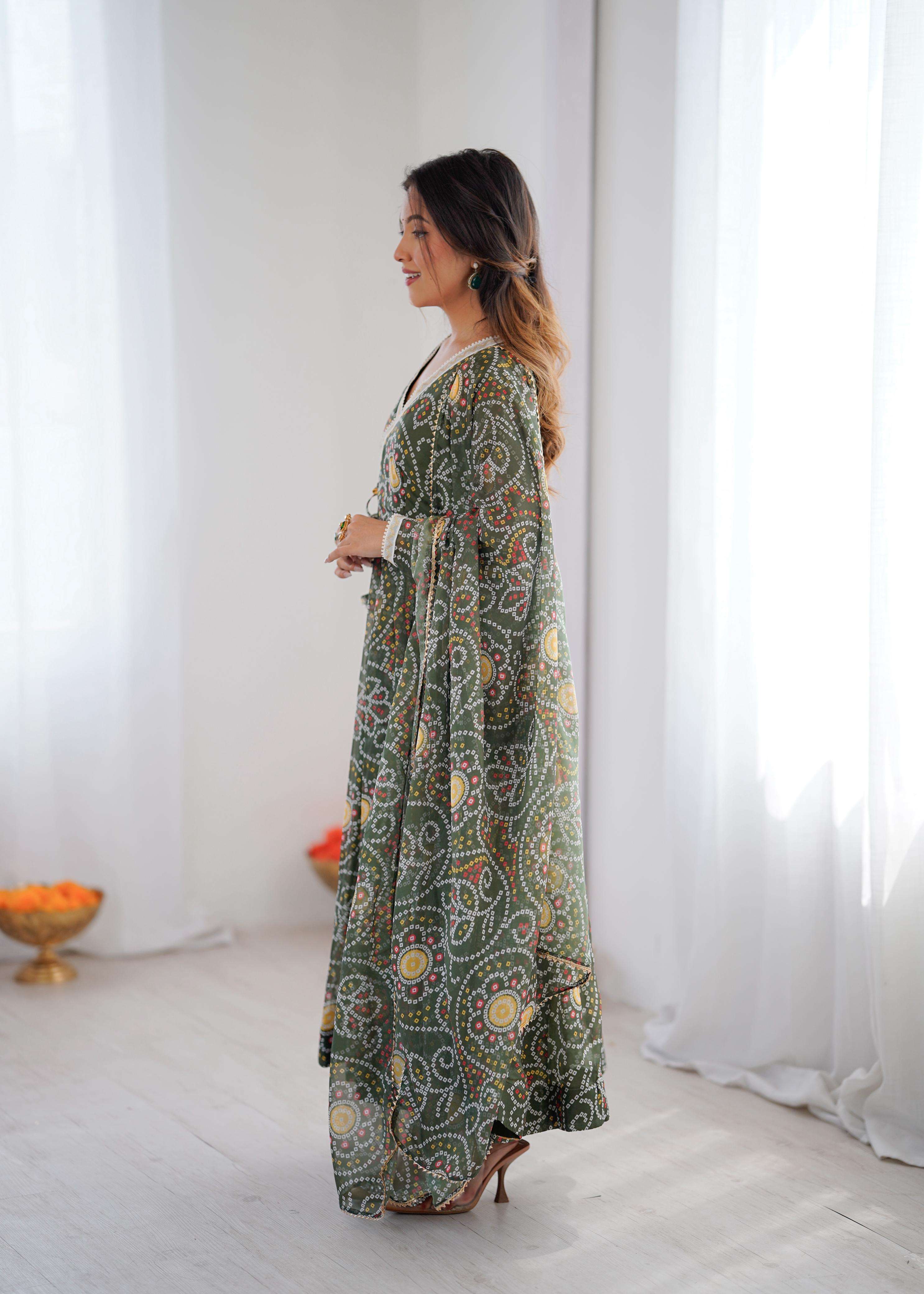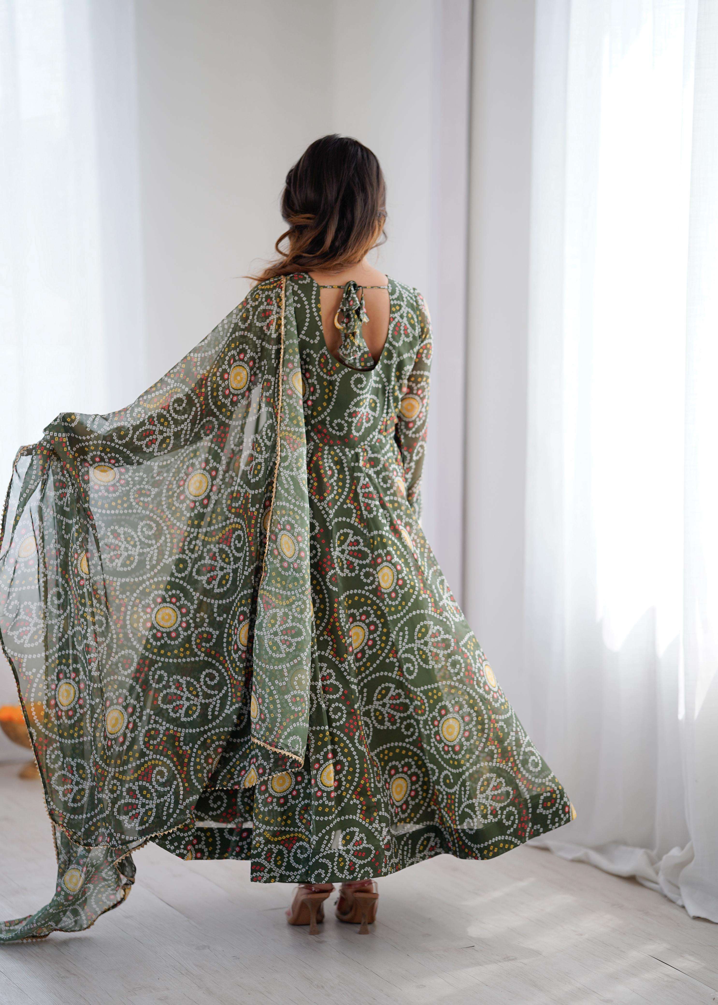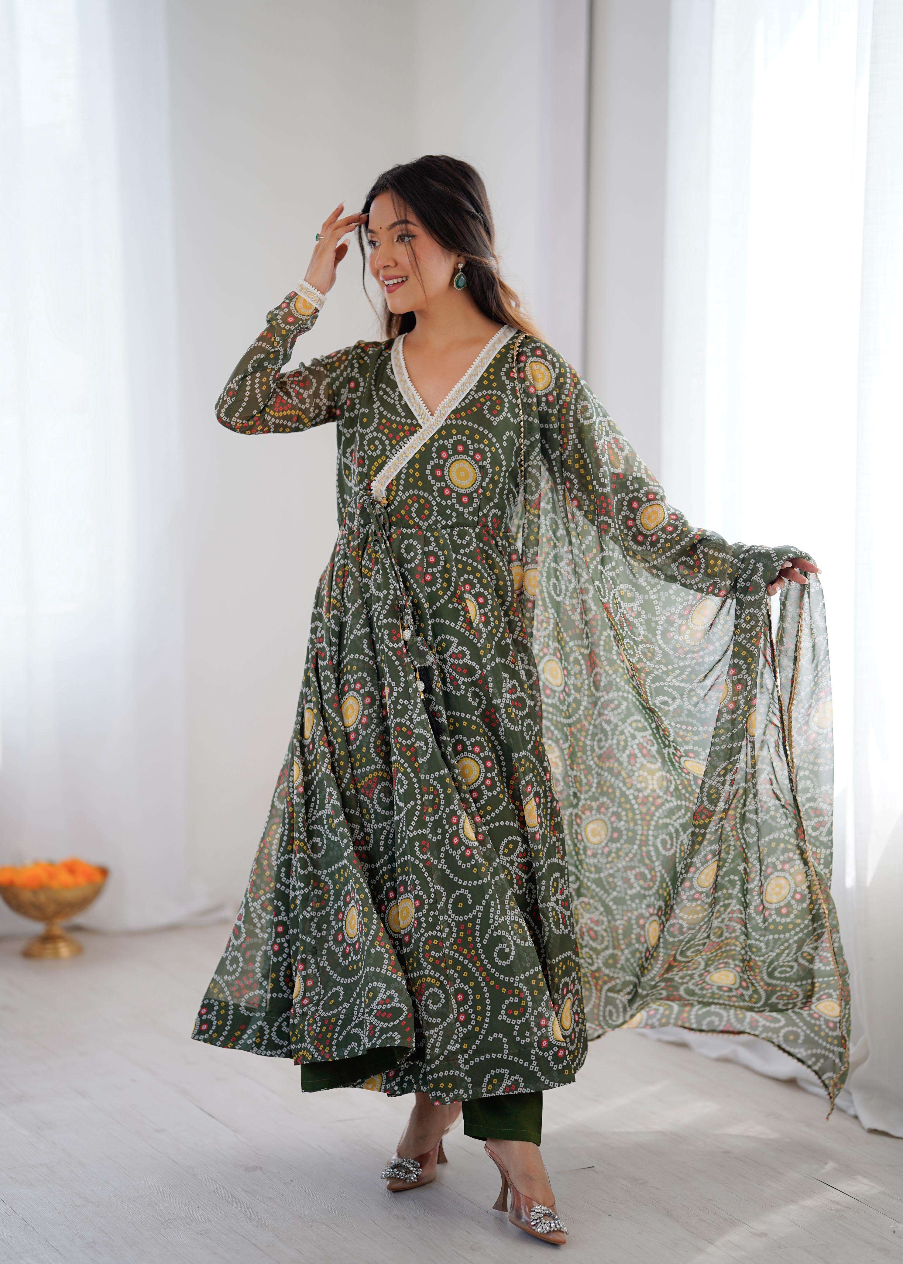 *TOP:-* 🌸*FABRIC*: PRINTED GEORGETTE ☘️*WORK*: READY MADE LACE ON NECKLINE *FLAIR*: APPROX 4 METERS FLAIR *INNER*: MICRO COTTON *LENGTH*:48"-49"Inch