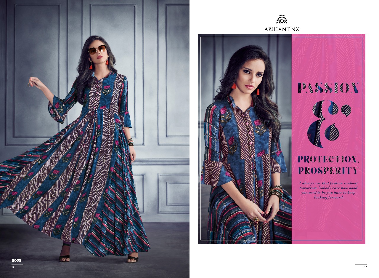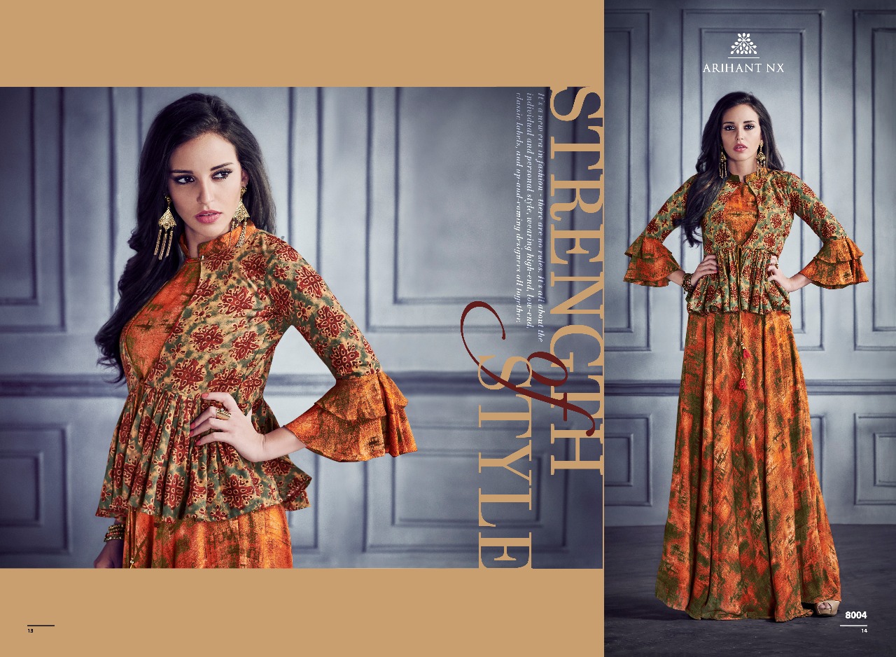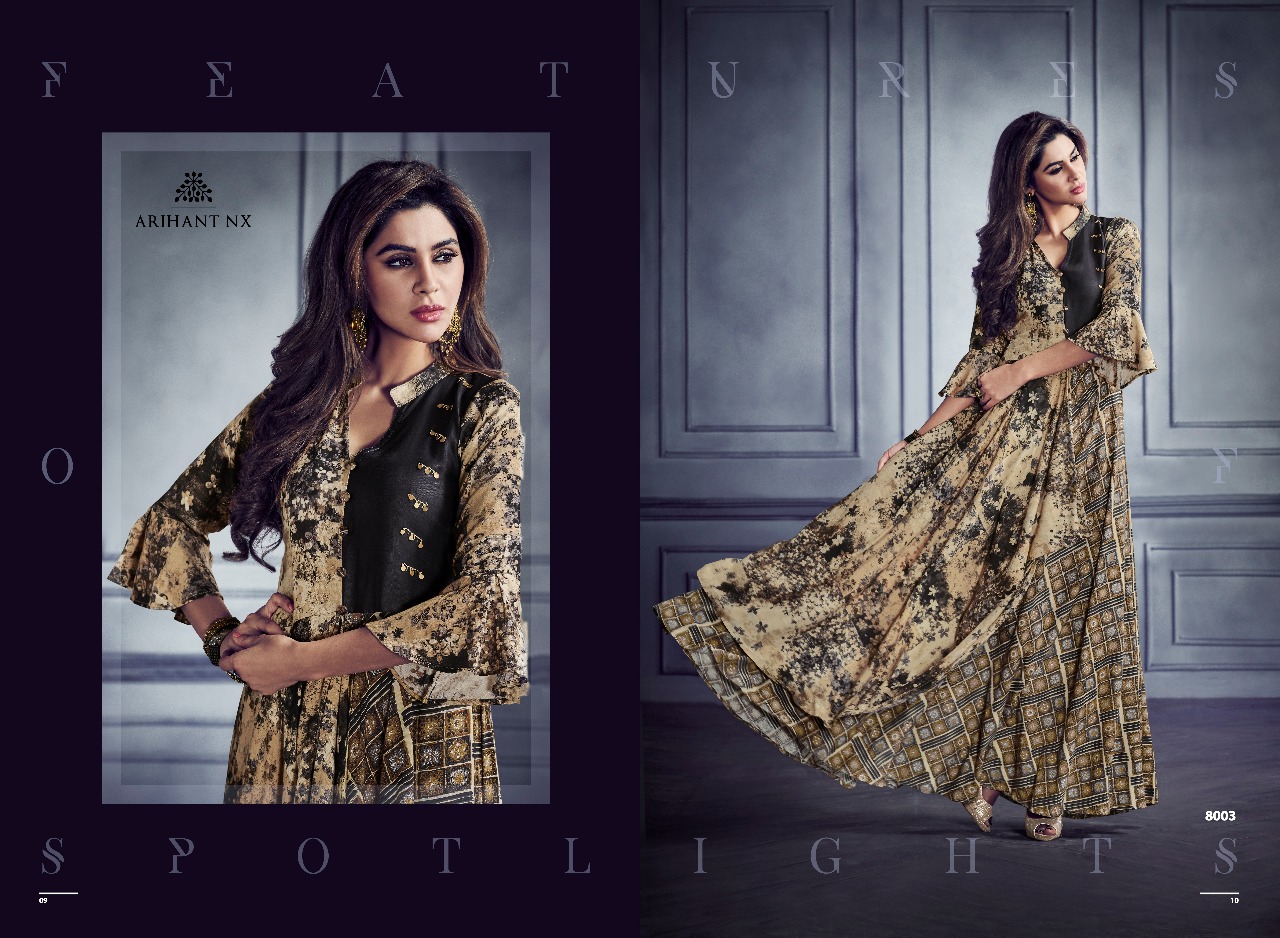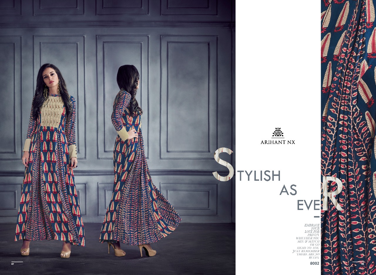 Buy Online Shabyata By Arihant Nx Series 8001 To 8007 Heavy Reyon Gown Wholesale Supplier And Dealer Gujarat 7 Pcs of Full Catalogue at Wholesale Price. Looking for Shabyata By Arihant Nx Series 8001 To 8007 Heavy Reyon Gown Wholesale Supplier And Dealer Gujarat Full Catalouge at Best Price? Buy Now Shabyata By Arihant Nx Series 8001 To 8007 Heavy Reyon Gown Wholesale Supplier And Dealer Gujarat at Wholesale Rate of Rs 5593 with Total 7 Pcs from authroized dealer and supplier of ARIHANT NX Brand. Cost of Each piece is just only Rs 799 which is very low and affordable price to resale the product in your retail store ,This is Surat based Wholesale Supplier & Dealer of ARIHANT NX Brand. Click on Brand name to Know more about ARIHANT NX Brand's products.Call or Whatsapp on 9898838984 for booking or enquiry