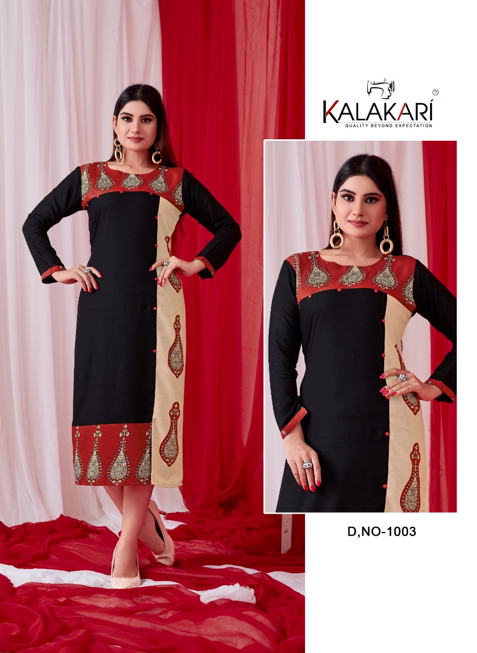 Shachi Vol 4 By Kalakari Nx 1001 Series Designer Reyon Printed Kurti Catlog Wholesale Dealer Surat