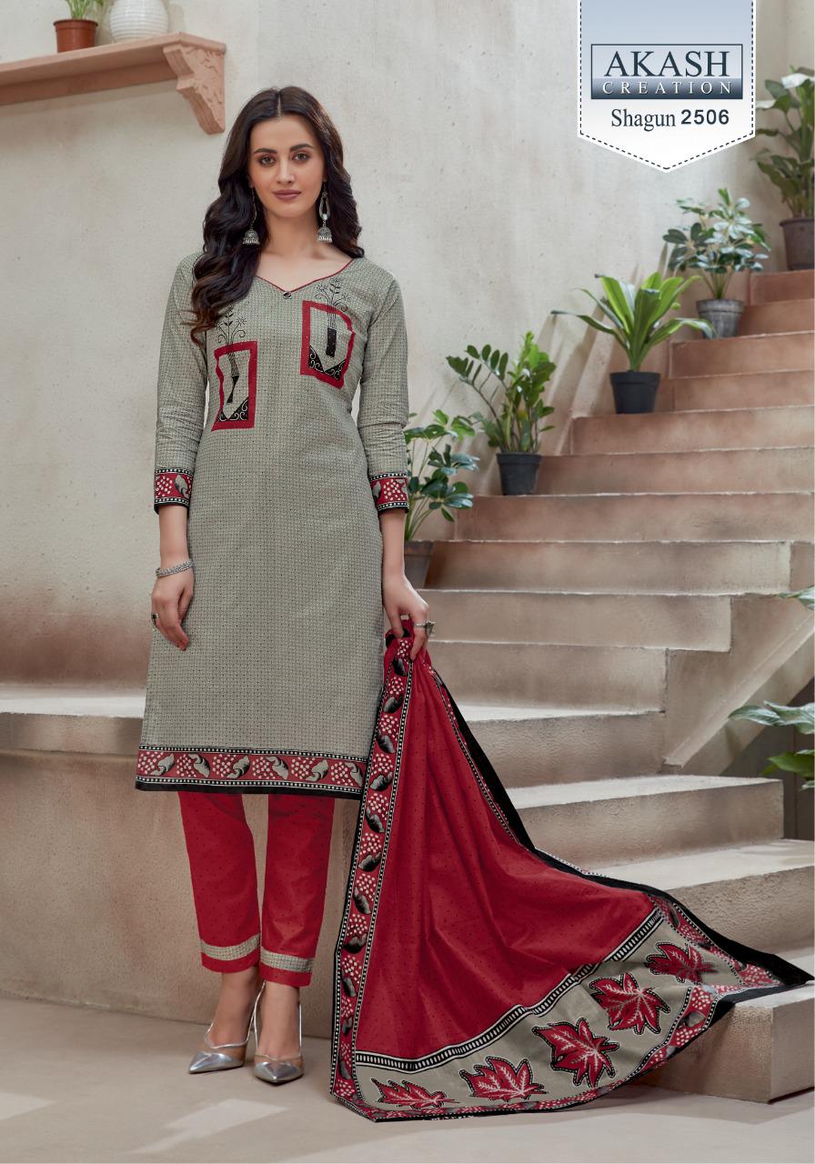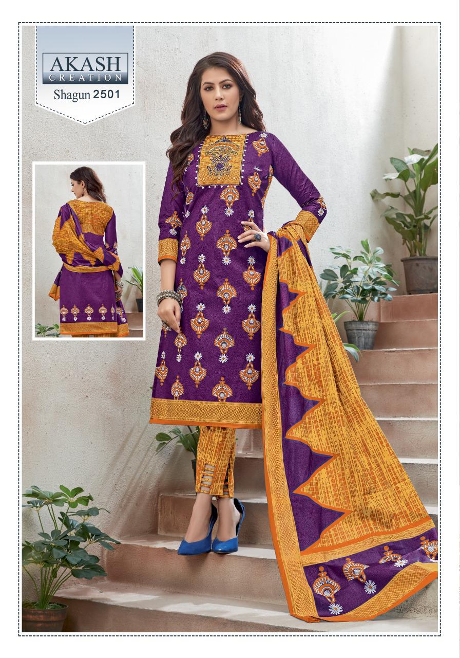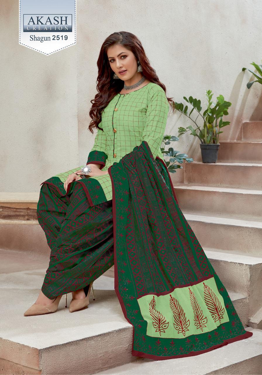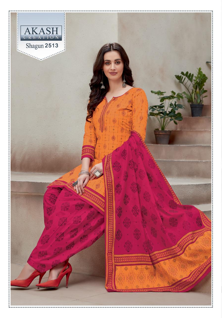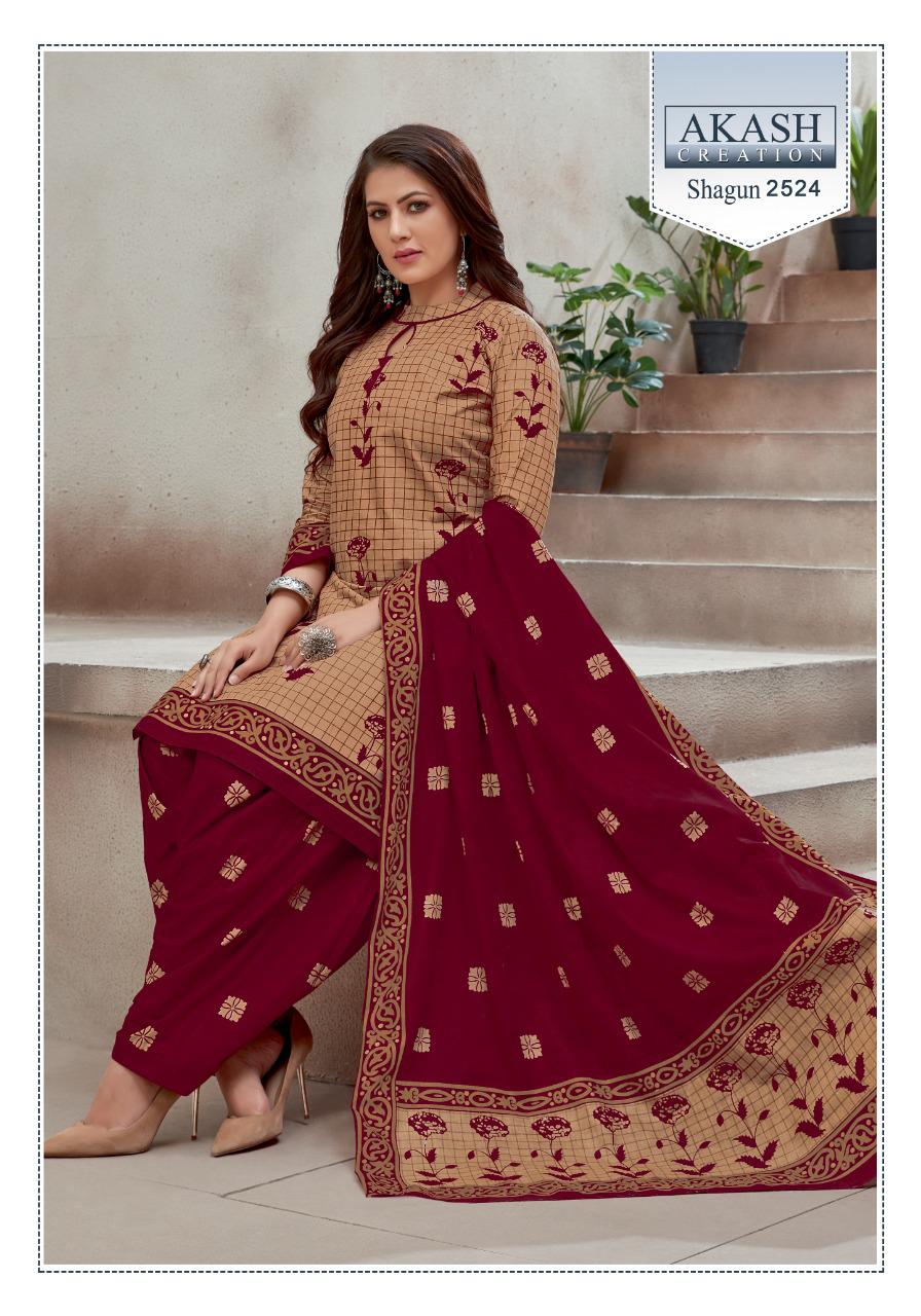 Buy Online Shagun 25 By Akash Creation By Mayur Manufacturer Traders Surat Gujrat 25 Pcs of Full Catalogue at Wholesale Price. Looking for Shagun 25 By Akash Creation By Mayur Manufacturer Traders Surat Gujrat Full Catalouge at Best Price? Buy Now Shagun 25 By Akash Creation By Mayur Manufacturer Traders Surat Gujrat at Wholesale Rate of Rs 7625 with Total 25 Pcs from authroized dealer and supplier of Patiala Suit Brand. Cost of Each piece is just only Rs 305 which is very low and affordable price to resale the product in your retail store ,This is Surat based Wholesale Supplier & Dealer of Patiala Suit Brand. Click on Brand name to Know more about Patiala Suit Brand's products.Call or Whatsapp on 9898838984 for booking or enquiry