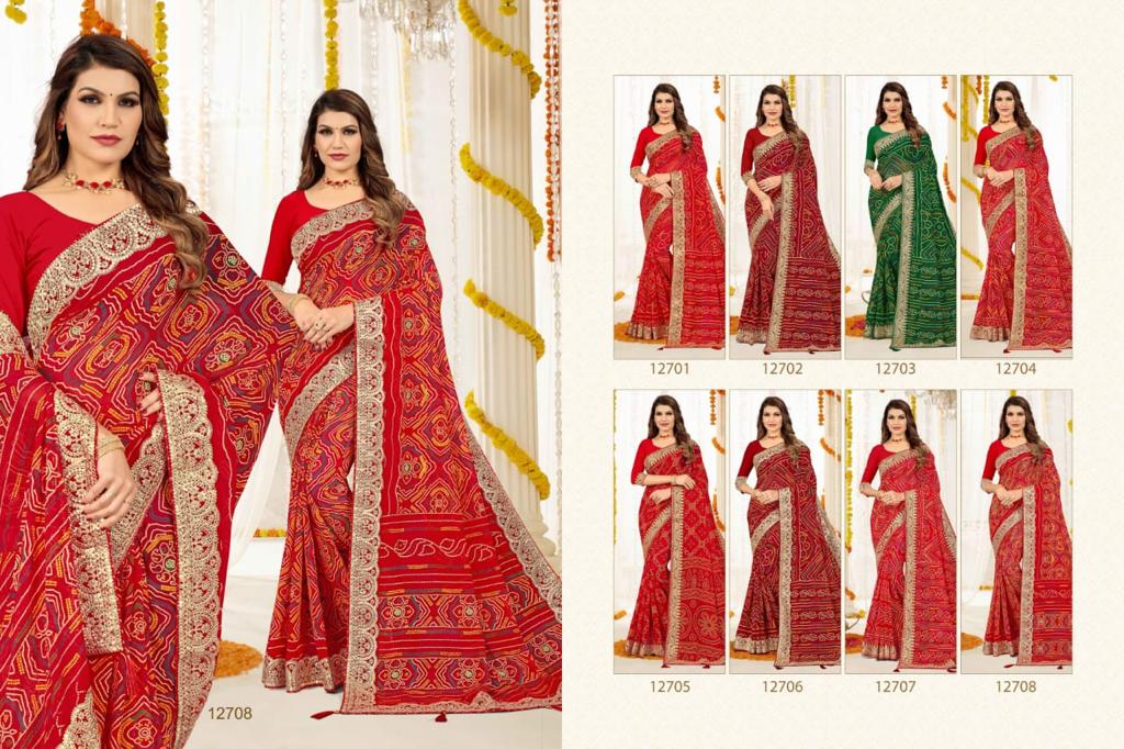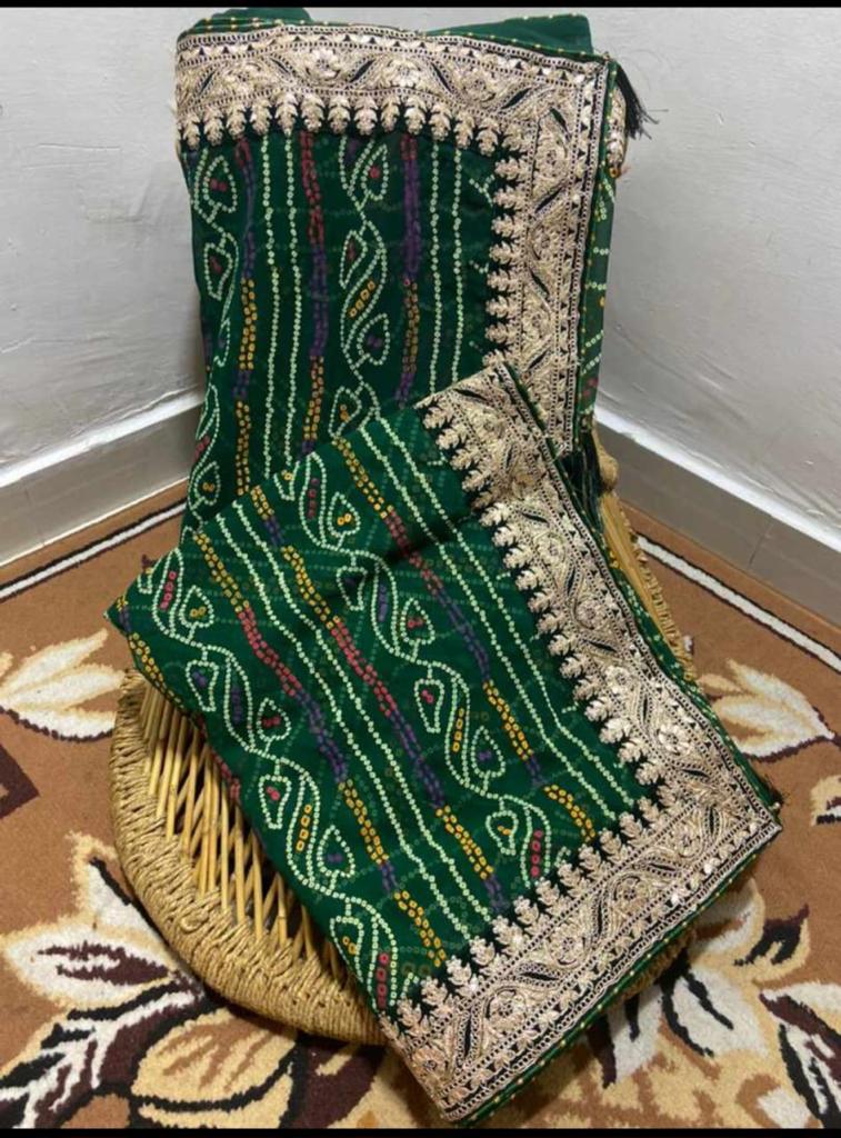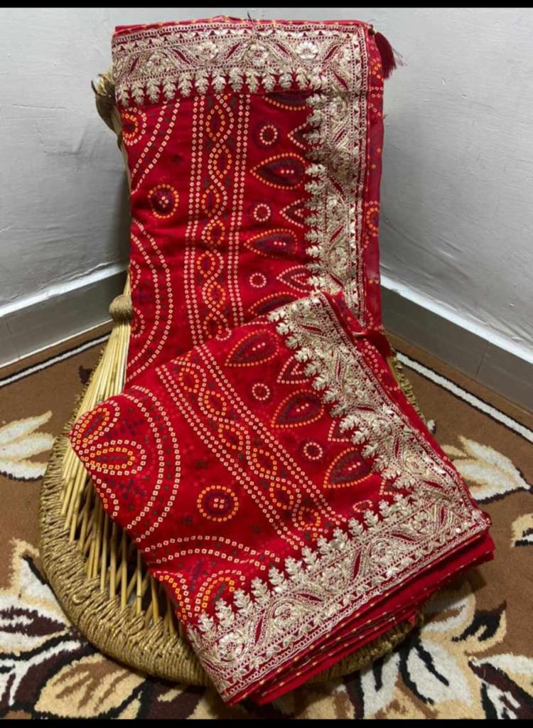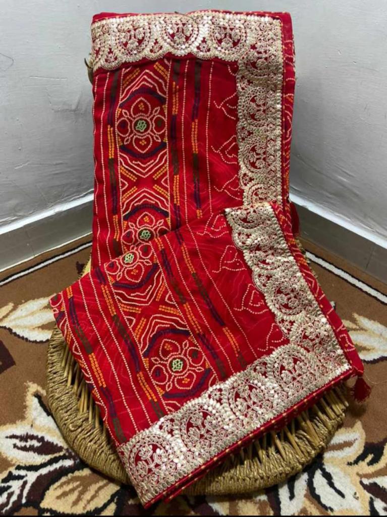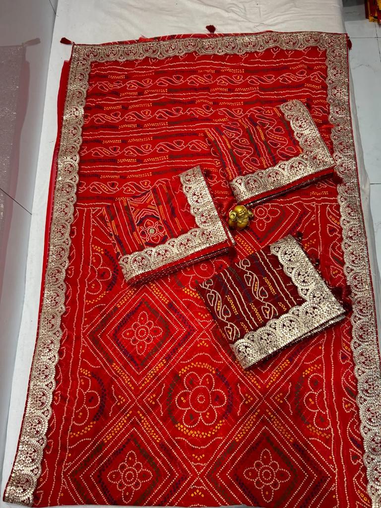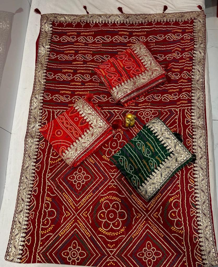 *PURE MULTI COLOUR BANDHANI CATALOUGE WITH HEAVY C-PALLU WORK & FANCY BROKET BLOUSE PIECE* *NEW AUTHENTIC CÃ?C BANDHEJ SAREE CATALOUGE WITH HEAVY GOTTA WORK BORDER* NAME - *SHAGUN*?? PCS - *8 PCS* RATE - 925/- Gst ship extra FABRIC - *CÃ?C GORGET*?? BLOUSE - *SAME AS SAREE FABRIC* 100+single |