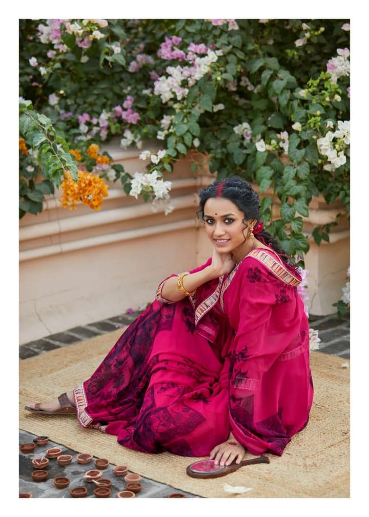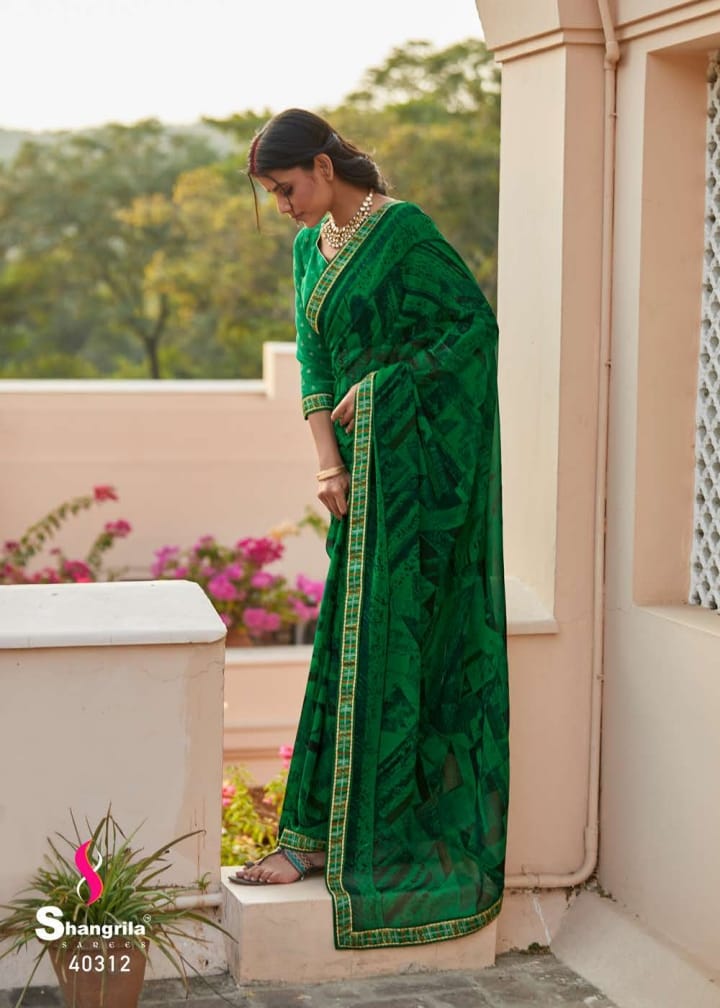 Shagun Shangrila Latest Bamber Georgette Collection Of New Bright Prints and Border....!! 12 pc 12 design 595/- |
