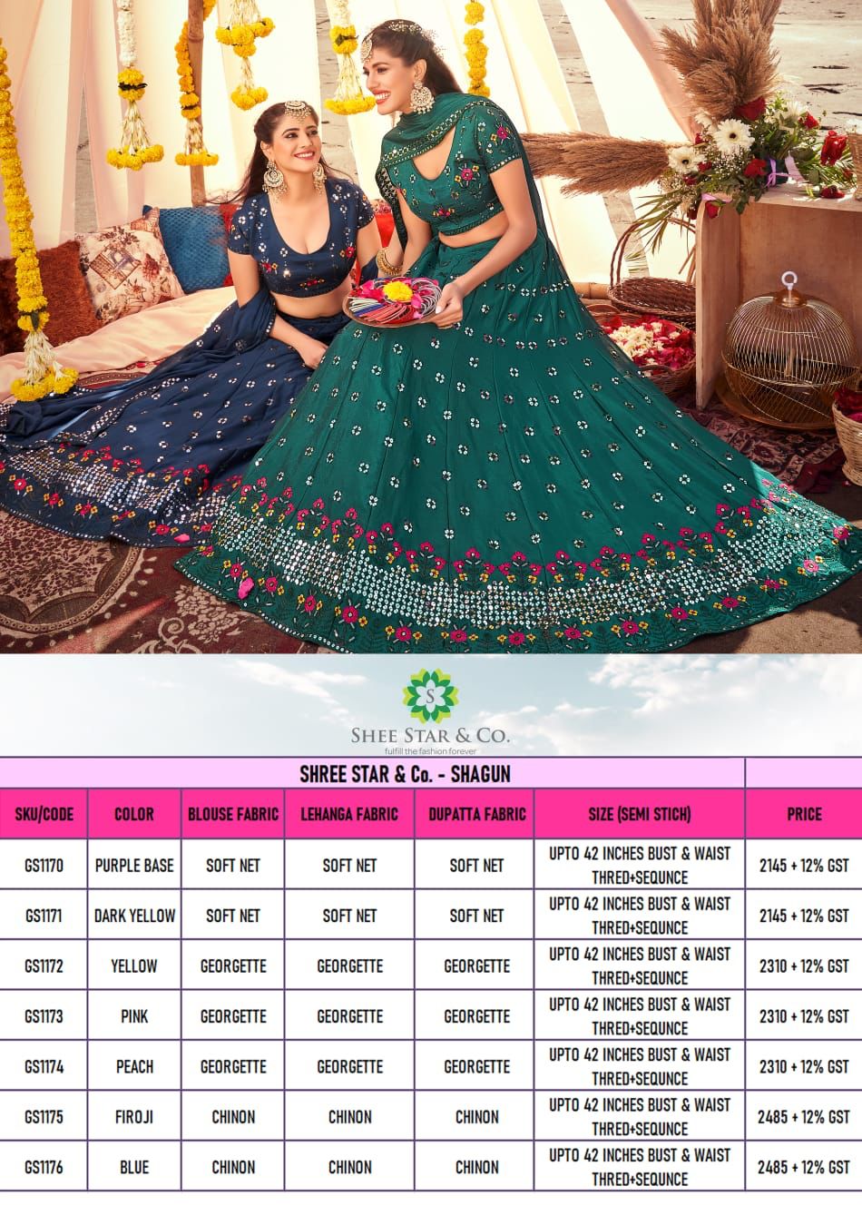 Buy Online Shagun By Shee Star Designer Wedding Wear Collection Single And Set Stockiest And Supplier From Surat 7 Pcs of Full Catalogue at Wholesale Price. Looking for Shagun By Shee Star Designer Wedding Wear Collection Single And Set Stockiest And Supplier From Surat Full Catalouge at Best Price? Buy Now Shagun By Shee Star Designer Wedding Wear Collection Single And Set Stockiest And Supplier From Surat at Wholesale Rate of Rs 0 with Total 7 Pcs from authroized dealer and supplier of Brand. Cost of Each piece is just only Rs 0 which is very low and affordable price to resale the product in your retail store ,This is Surat based Wholesale Supplier & Dealer of Brand. Click on Brand name to Know more about Brand's products.Call or Whatsapp on 9898838984 for booking or enquiry