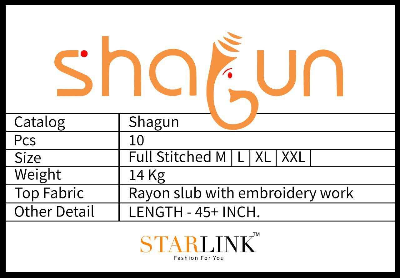 Buy Online Shagun Vol 1 By Starlink Manufacturer Traders Surat 10 Pcs of Full Catalogue at Wholesale Price. Looking for Shagun Vol 1 By Starlink Manufacturer Traders Surat Full Catalouge at Best Price? Buy Now Shagun Vol 1 By Starlink Manufacturer Traders Surat at Wholesale Rate of Rs 2990 with Total 10 Pcs from authroized dealer and supplier of Brand. Cost of Each piece is just only Rs 299 which is very low and affordable price to resale the product in your retail store ,This is Surat based Wholesale Supplier & Dealer of Brand. Click on Brand name to Know more about Brand's products.Call or Whatsapp on 9898838984 for booking or enquiry