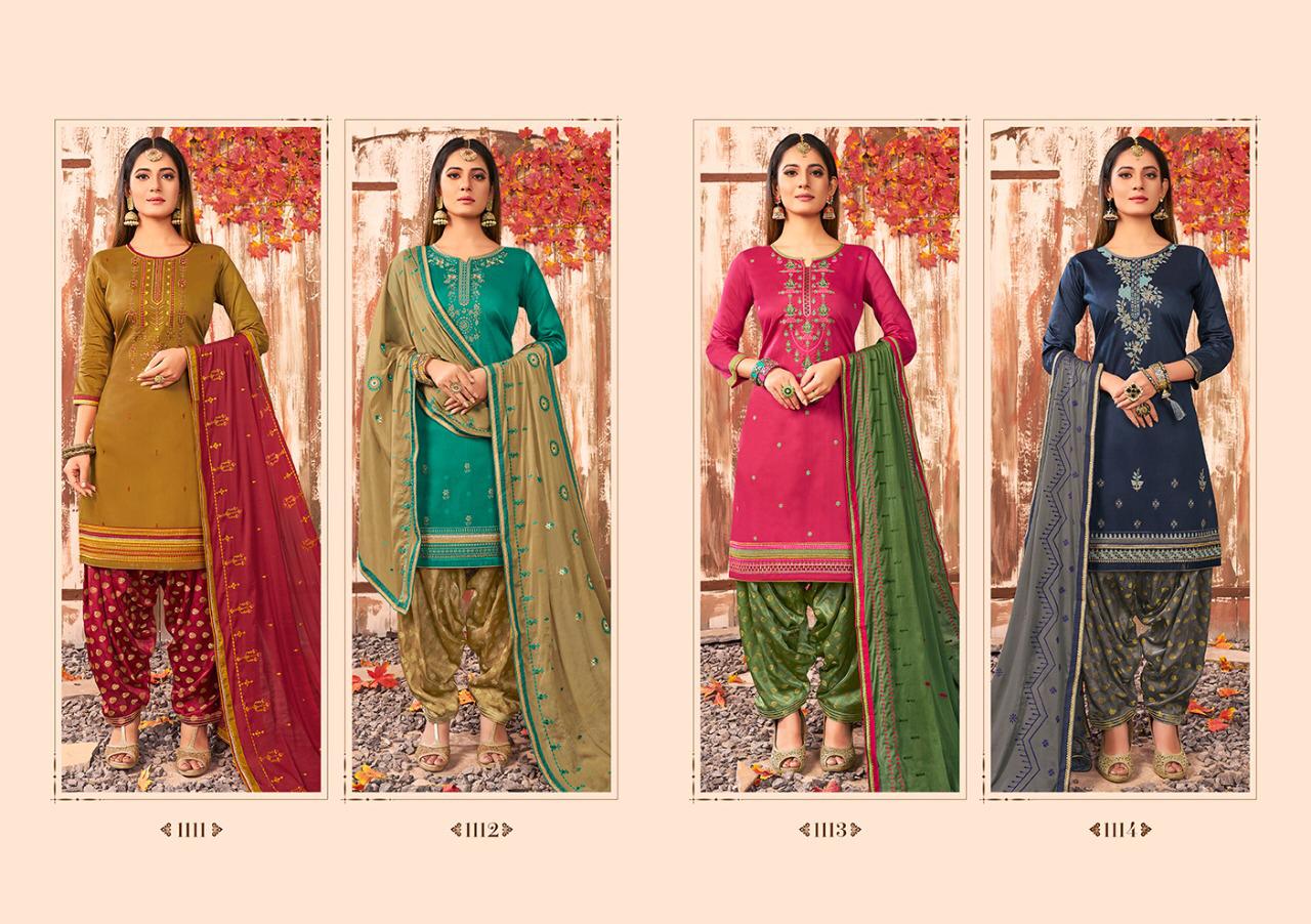 ? *Kalarang.* has launched _Catalog name_ : *Shagun Vol - 6* ? _Fabric Details_ ? ?Top:- PURE JAM SILK COTTON WITH WORK ?Bottom:- PURE SILK VISCOSE JARI BUTTI ?Dupatta:- PURE CHINON WITH HEAVY EMBROIDERY WORK WITH JACQUARD BORDER ?Total Design:- 4 Rate- 949 per Pcs . Set To Set . GST 5 Percent Extra. ?Dispatching 5 to 6 days later ?Booking started from now... ?Order yours soon.... |