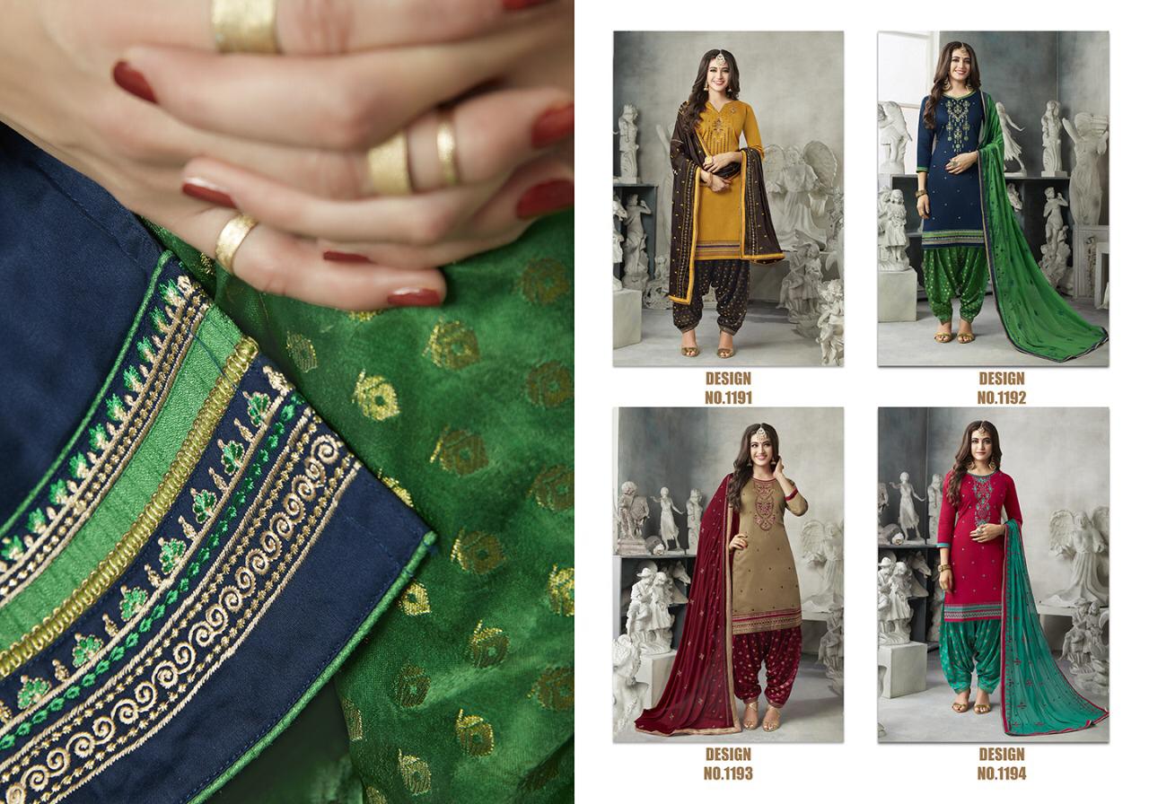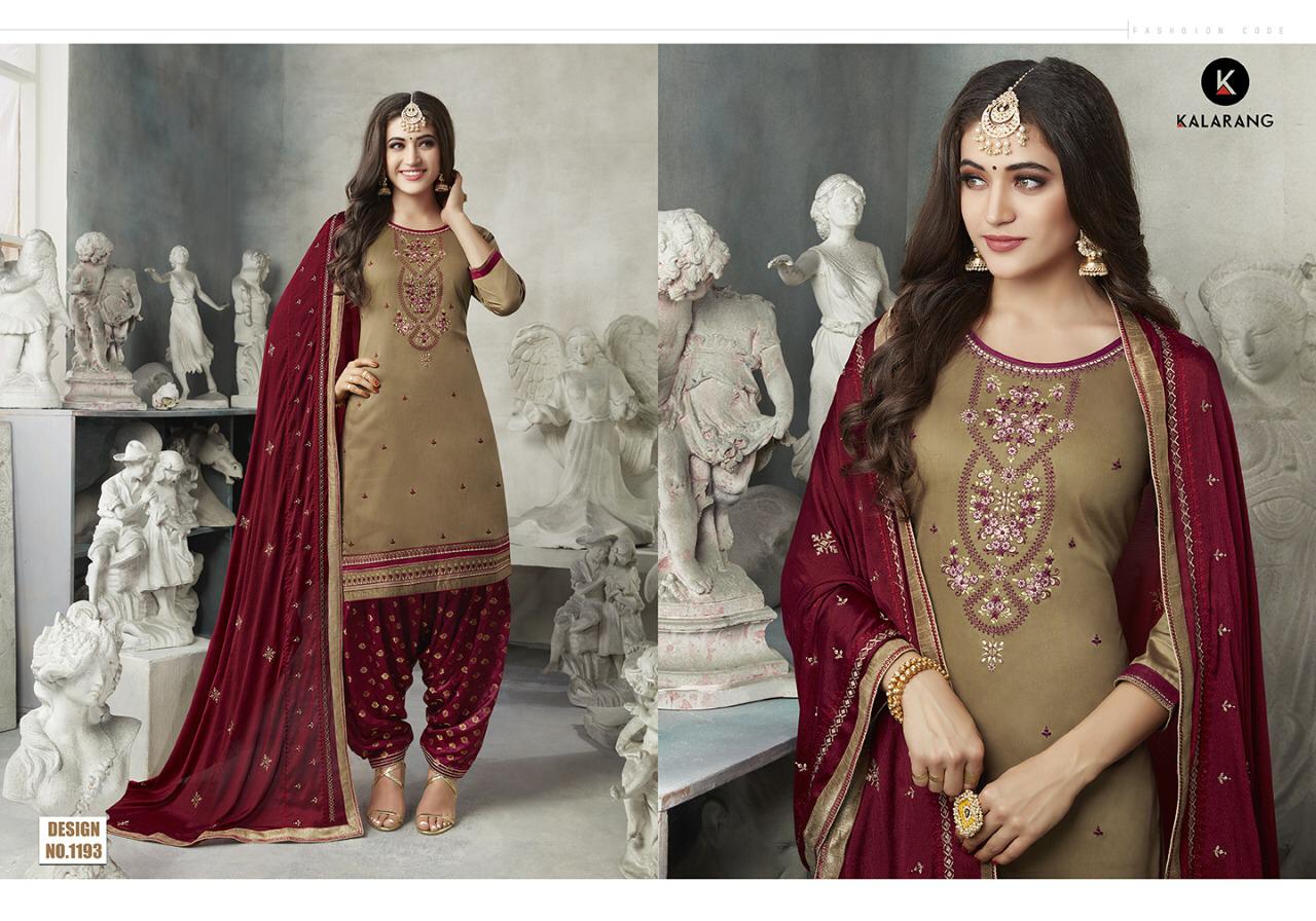 ? *Kalarang.* has launched _Catalog name_: *Shagun Vol - 7* ? _Fabric Details_ ? ?Top:- PURE JAM SILK COTTON WITH WORK ?Bottom:- PURE SILK VISCOSE JARI BUTTI ?Dupatta:- PURE CHINON WITH HEAVY EMBROIDERY WORK WITH JACQUARD BORDER ?Total Design:- 4 Rate - 949 per Pcs . Set to set . ?Dispatching 5 to 6 days later ?Booking started from now... ?Order yours soon....+ |