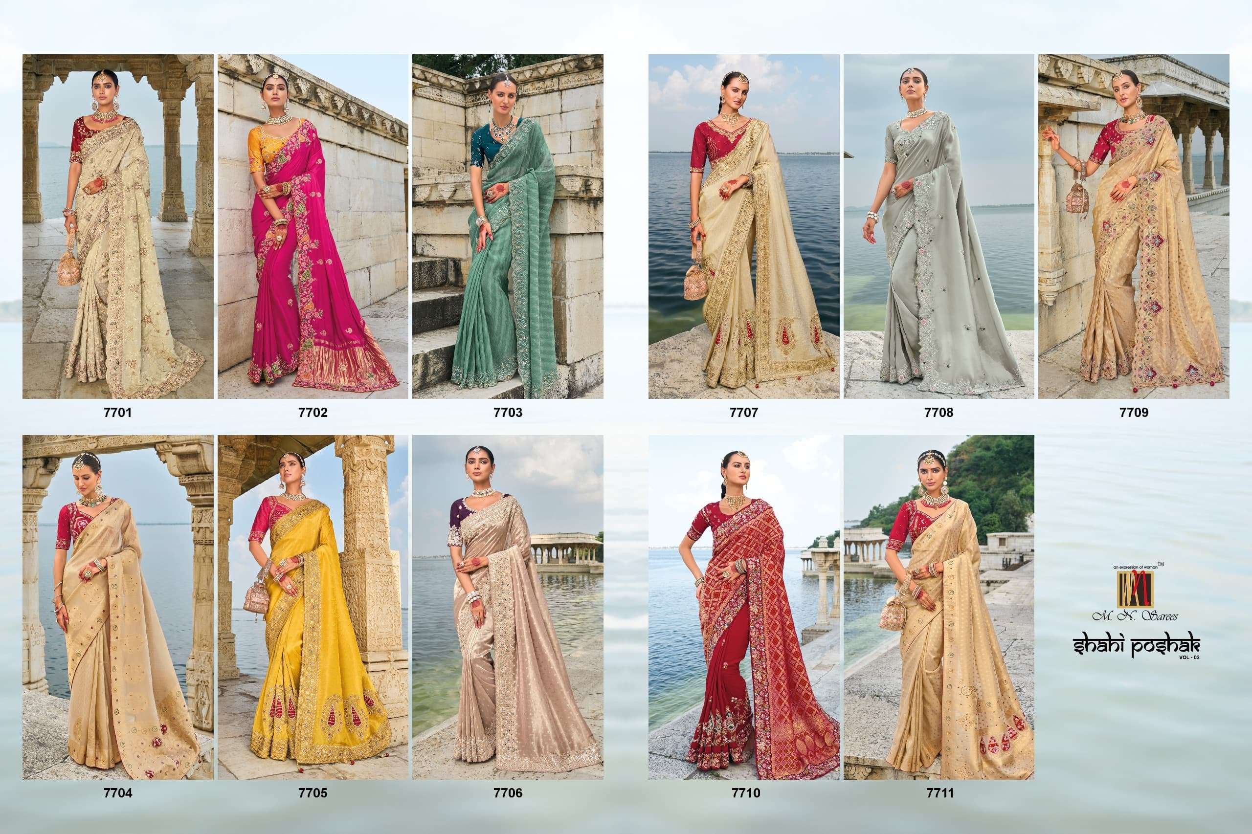 | Catalog | Shahi poshak series 7701 to7711by MN heavy party wear saree collection dealer surat |