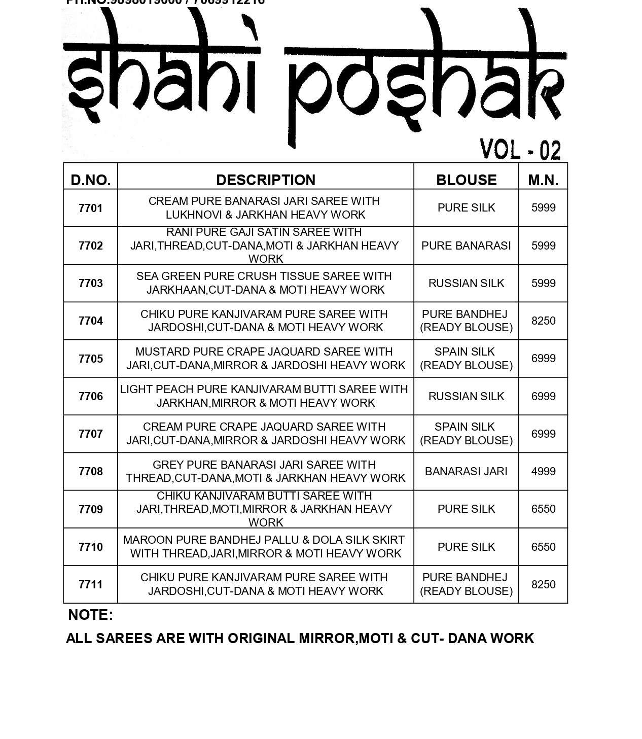 Shahi Poshak Vol 2 Series 7701 to 7711 by M N saree collection manufacturer surat
