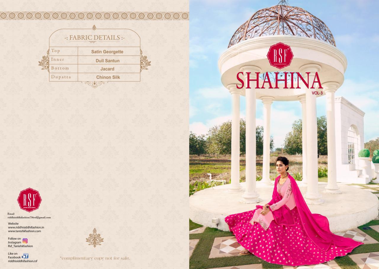 Buy Online Shahina Vol 3 By Rsf Designer Suits Wholesale Supplier And Dealer Gujarat 5 Pcs of Full Catalogue at Wholesale Price. Looking for Shahina Vol 3 By Rsf Designer Suits Wholesale Supplier And Dealer Gujarat Full Catalouge at Best Price? Buy Now Shahina Vol 3 By Rsf Designer Suits Wholesale Supplier And Dealer Gujarat at Wholesale Rate of Rs 6975 with Total 5 Pcs from authroized dealer and supplier of RSF Brand. Cost of Each piece is just only Rs 1395 which is very low and affordable price to resale the product in your retail store ,This is Surat based Wholesale Supplier & Dealer of RSF Brand. Click on Brand name to Know more about RSF Brand's products.Call or Whatsapp on 9898838984 for booking or enquiry