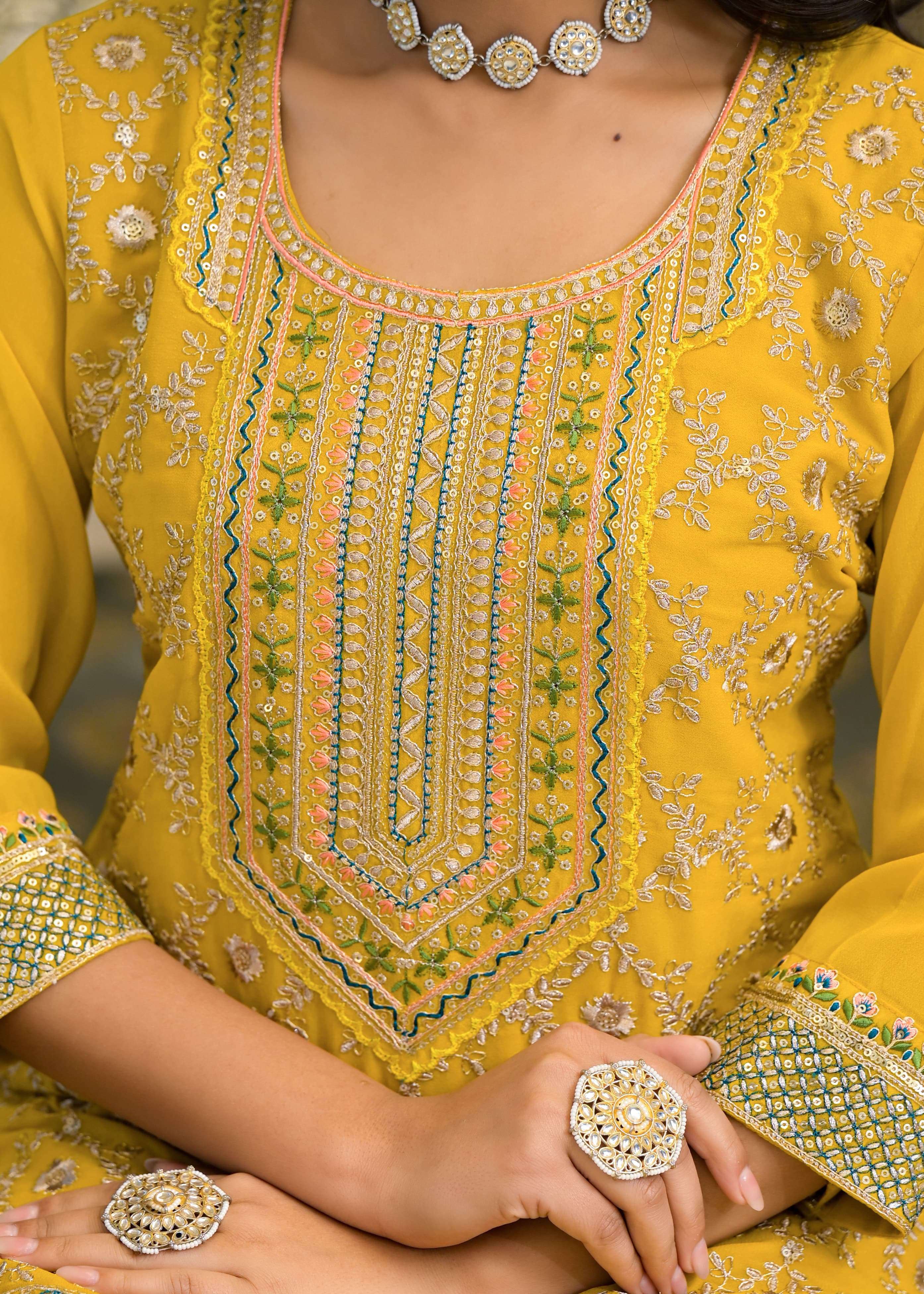 Discpration:- *Fabric:- Top:-* Star simmer Jorjet with Crossiyo zari embroidery work *Plazzo:-* Star simmer Jorjet with work *Duppata:-* Star simmer Jorjet with muslim diamond work