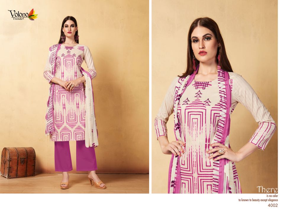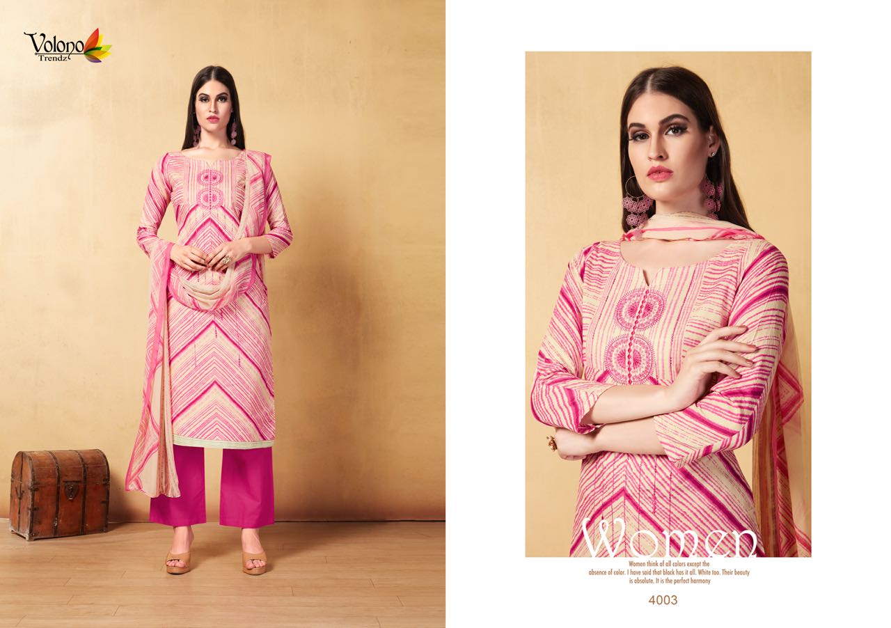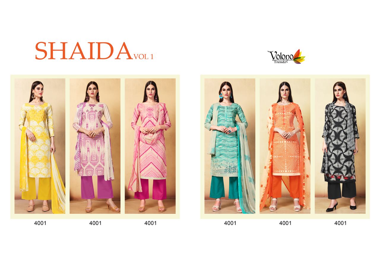Buy Online Shaida Vol 1 By Volono Series 4001 Cambric Cotton Suits 6 Pcs of Full Catalogue at Wholesale Price. Looking for Shaida Vol 1 By Volono Series 4001 Cambric Cotton Suits Full Catalouge at Best Price? Buy Now Shaida Vol 1 By Volono Series 4001 Cambric Cotton Suits at Wholesale Rate of Rs 2970 with Total 6 Pcs from authroized dealer and supplier of VOLONO TRENDZ Brand. Cost of Each piece is just only Rs 495 which is very low and affordable price to resale the product in your retail store ,This is Surat based Wholesale Supplier & Dealer of VOLONO TRENDZ Brand. Click on Brand name to Know more about VOLONO TRENDZ Brand's products.Call or Whatsapp on 9898838984 for booking or enquiry