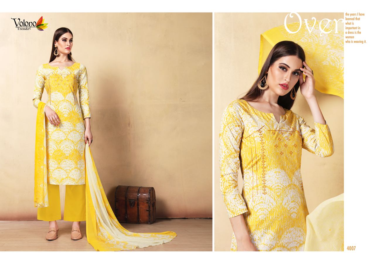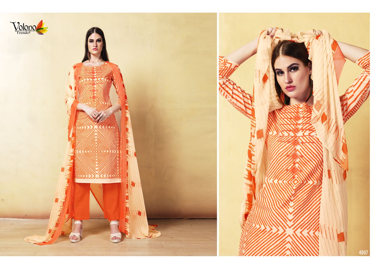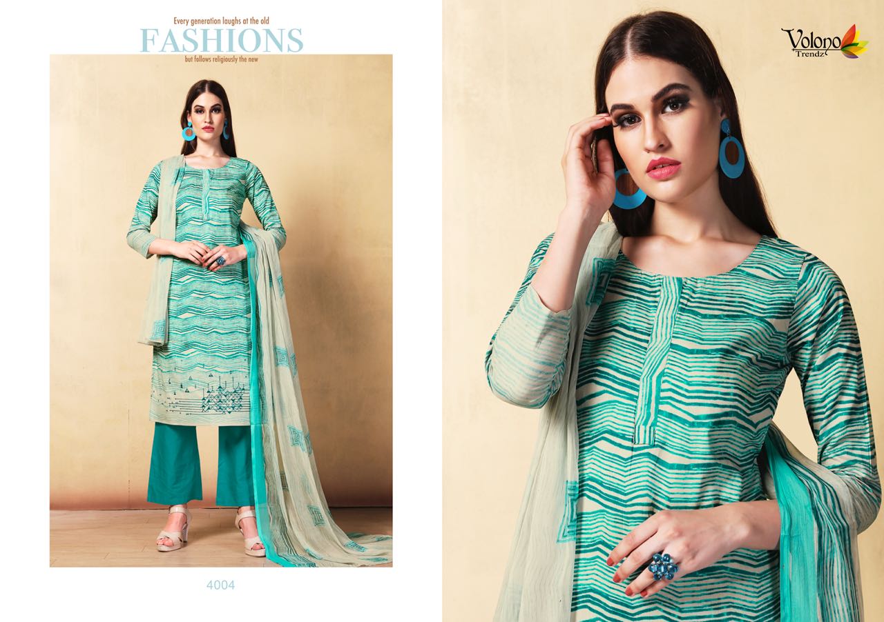 Buy Online Shaida Vol 1 By Volono Series 4001 Cambric Cotton Suits 6 Pcs of Full Catalogue at Wholesale Price. Looking for Shaida Vol 1 By Volono Series 4001 Cambric Cotton Suits Full Catalouge at Best Price? Buy Now Shaida Vol 1 By Volono Series 4001 Cambric Cotton Suits at Wholesale Rate of Rs 2970 with Total 6 Pcs from authroized dealer and supplier of VOLONO TRENDZ Brand. Cost of Each piece is just only Rs 495 which is very low and affordable price to resale the product in your retail store ,This is Surat based Wholesale Supplier & Dealer of VOLONO TRENDZ Brand. Click on Brand name to Know more about VOLONO TRENDZ Brand's products.Call or Whatsapp on 9898838984 for booking or enquiry