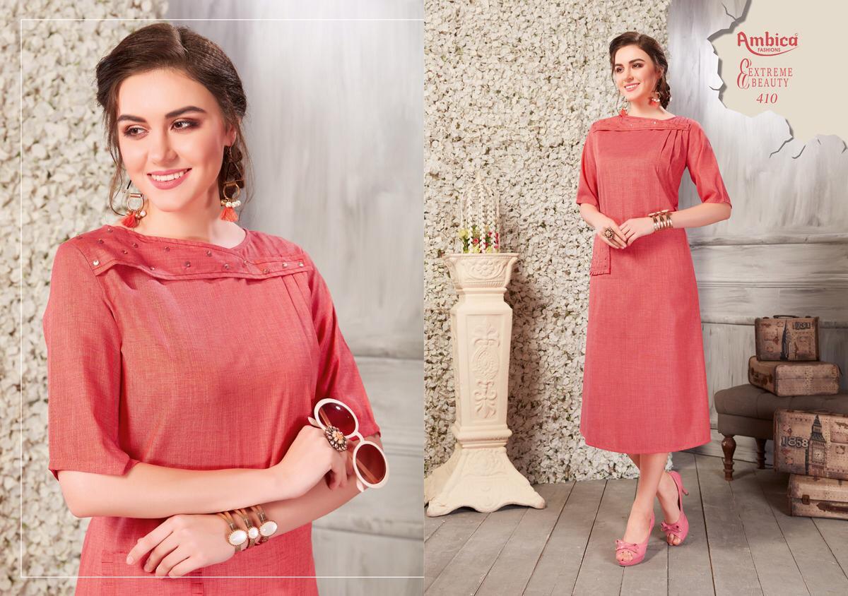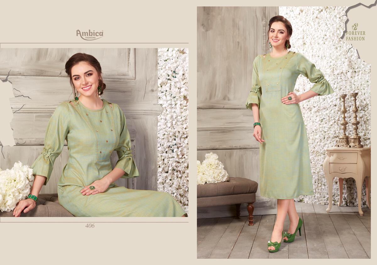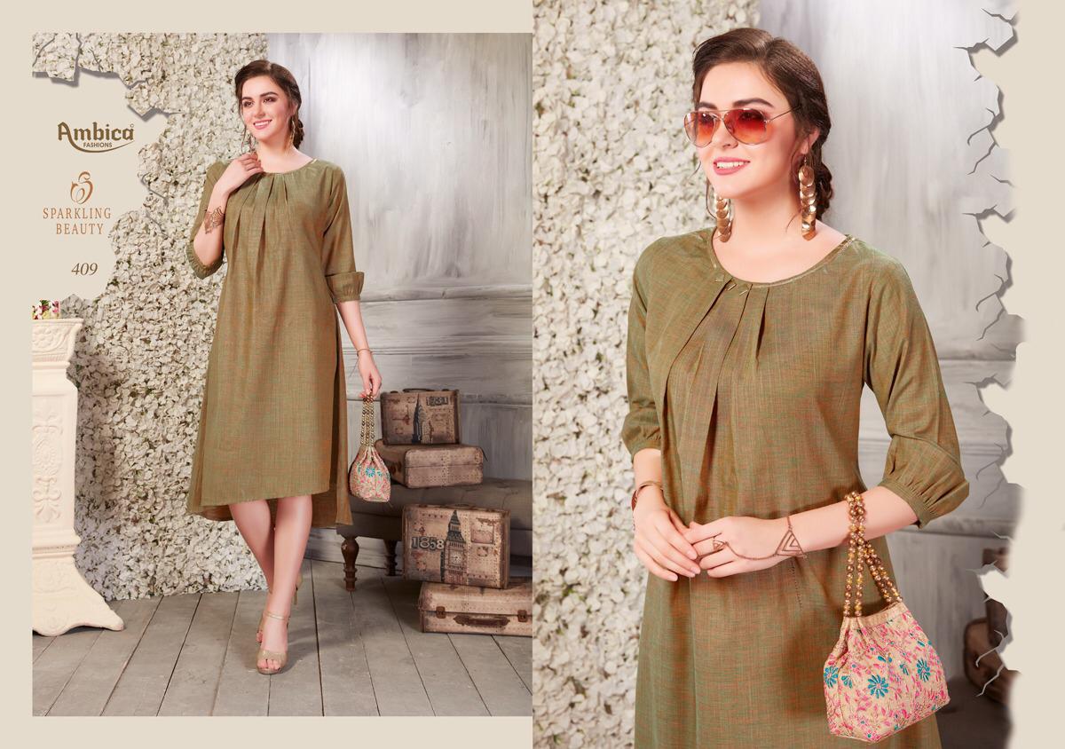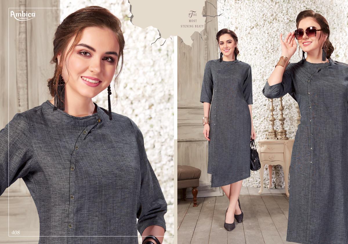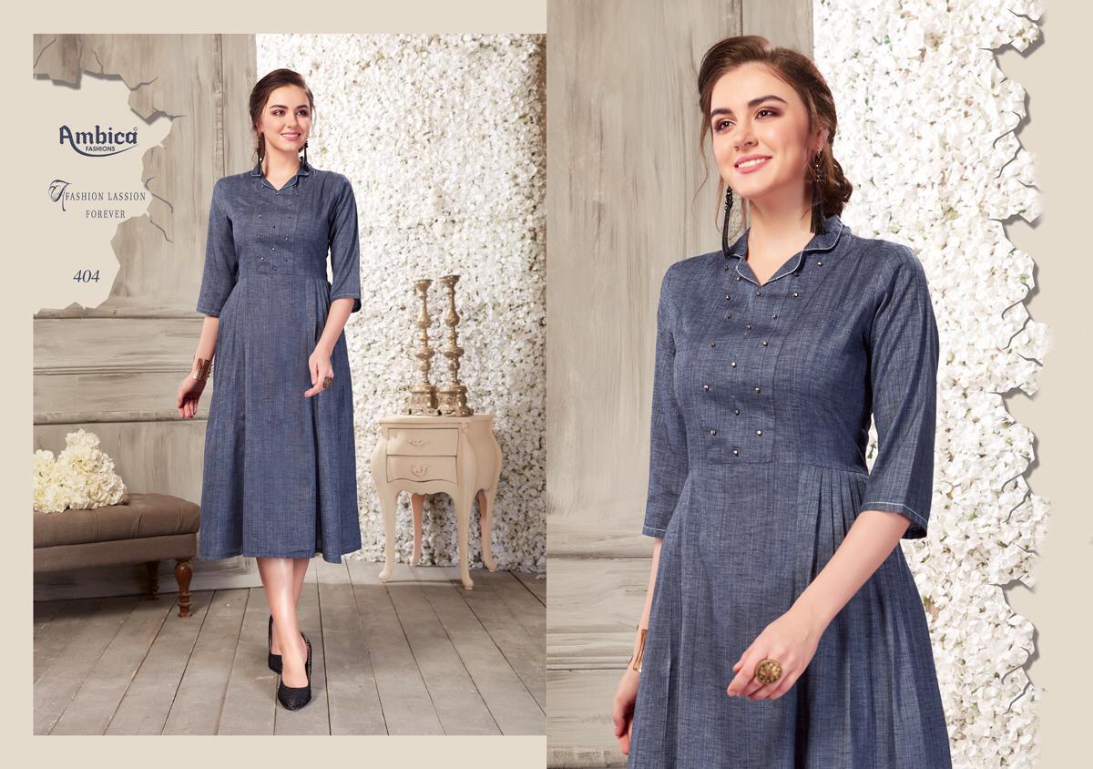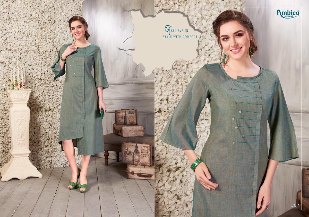 Buy Online Shaina By Ambica 401 Series Fancy Cotton Kurti Catlog Wholesale Dealer Surat 10 Pcs of Full Catalogue at Wholesale Price. Looking for Shaina By Ambica 401 Series Fancy Cotton Kurti Catlog Wholesale Dealer Surat Full Catalouge at Best Price? Buy Now Shaina By Ambica 401 Series Fancy Cotton Kurti Catlog Wholesale Dealer Surat at Wholesale Rate of Rs 5550 with Total 10 Pcs from authroized dealer and supplier of AMBICA Brand. Cost of Each piece is just only Rs 555 which is very low and affordable price to resale the product in your retail store ,This is Surat based Wholesale Supplier & Dealer of AMBICA Brand. Click on Brand name to Know more about AMBICA Brand's products.Call or Whatsapp on 9898838984 for booking or enquiry