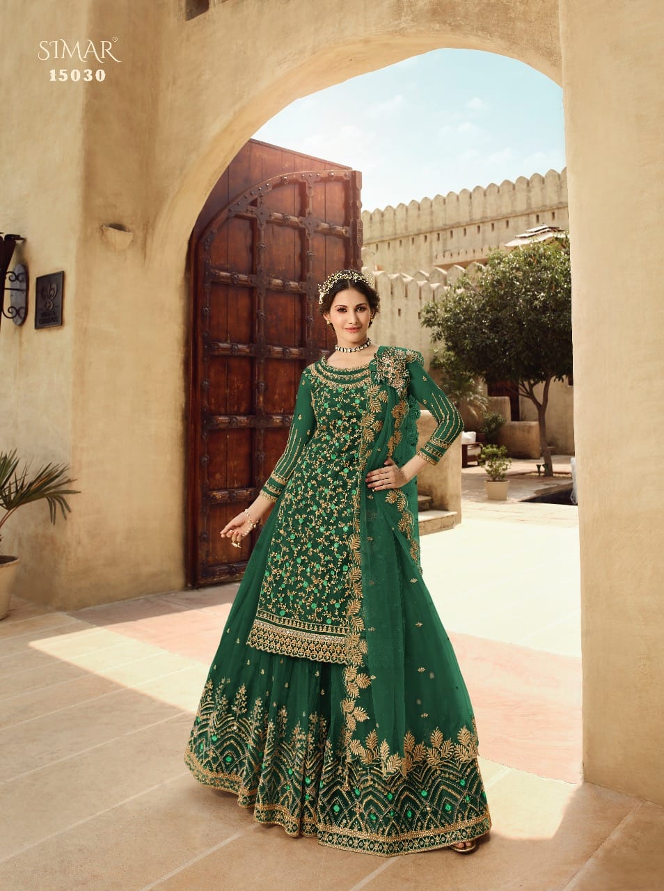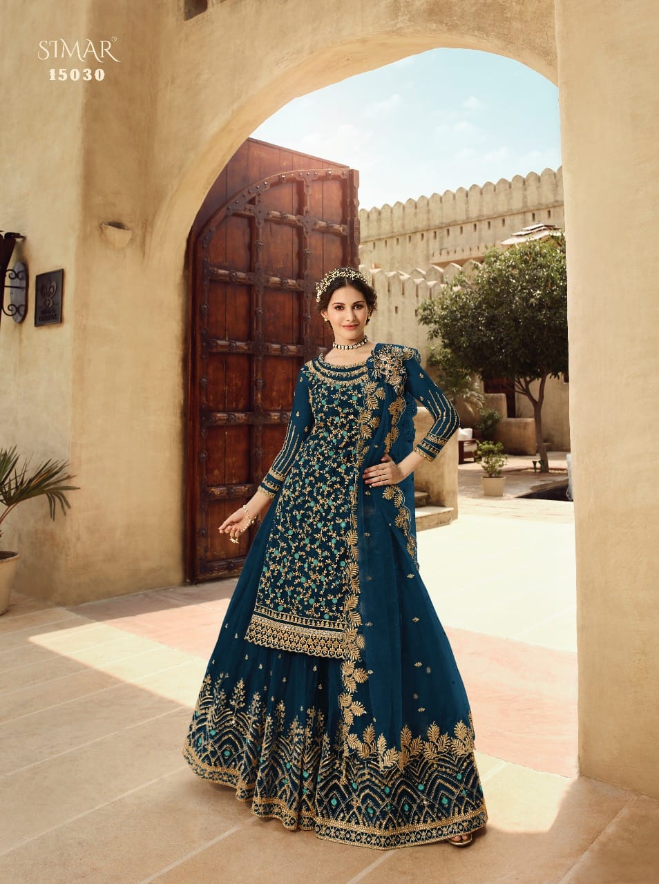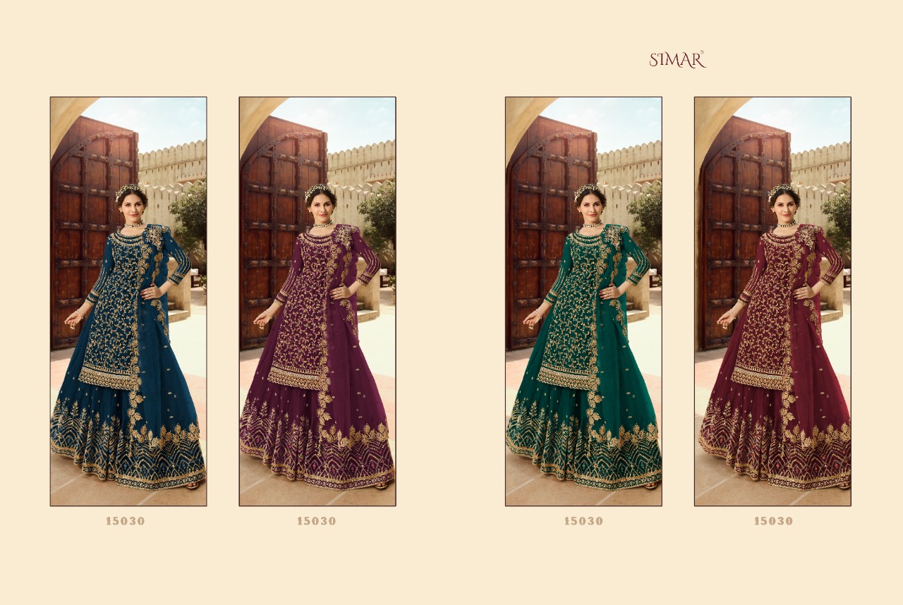*_*GLOSSY SUPER HIT*_* *DESIGN* :- ```15030``` Now In *COLOUR PLUS* *TOP* :- Net Embroidery With Swarovski Work *INNER & BOTTOM* :- Pure Santoon Solid Dyed *DUPATTA* :- Net Embroidery With Swarovski Work *RATE:-2995/- + (GST 12%)* |