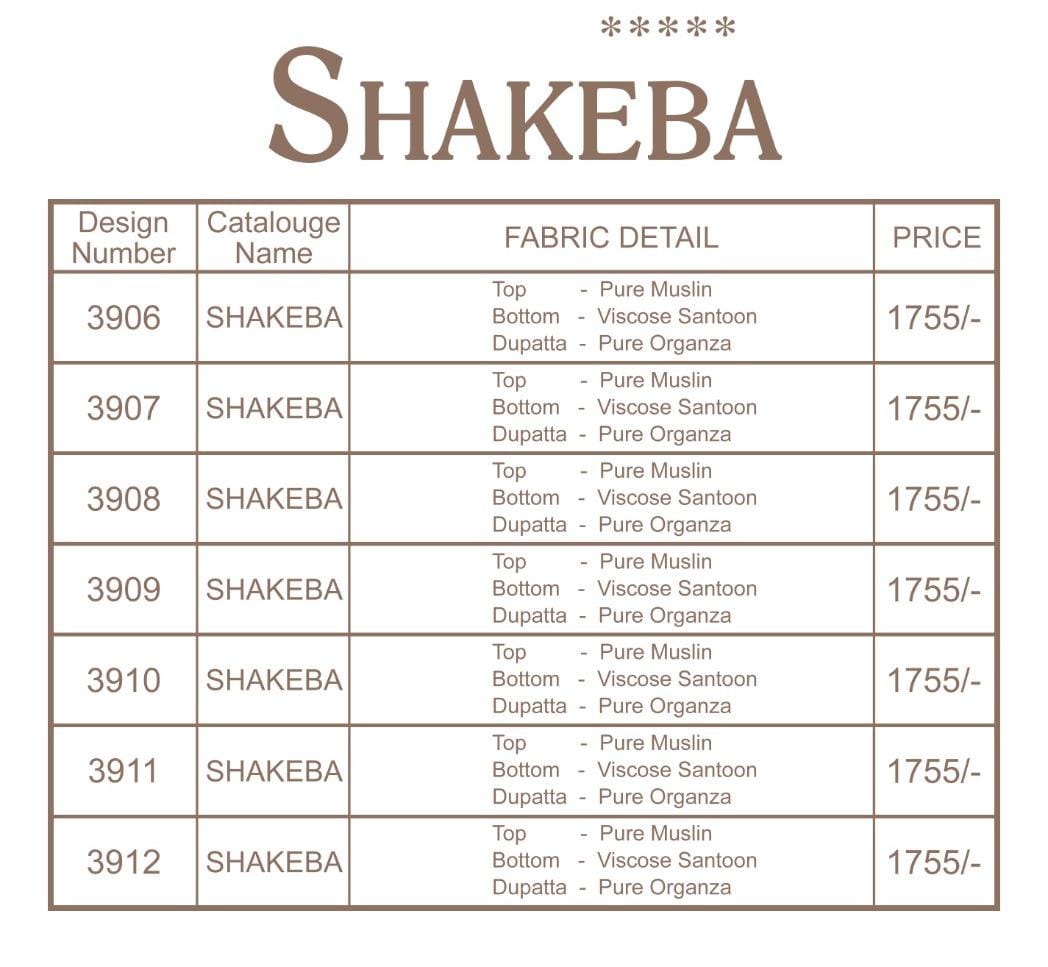 Buy Online Shakeba Bela Fashion Designer Maslin Suits 7 Pcs of Full Catalogue at Wholesale Price. Looking for Shakeba Bela Fashion Designer Maslin Suits Full Catalouge at Best Price? Buy Now Shakeba Bela Fashion Designer Maslin Suits at Wholesale Rate of Rs 12285 with Total 7 Pcs from authroized dealer and supplier of BELA Brand. Cost of Each piece is just only Rs 1755 which is very low and affordable price to resale the product in your retail store ,This is Surat based Wholesale Supplier & Dealer of BELA Brand. Click on Brand name to Know more about BELA Brand's products.Call or Whatsapp on 9898838984 for booking or enquiry