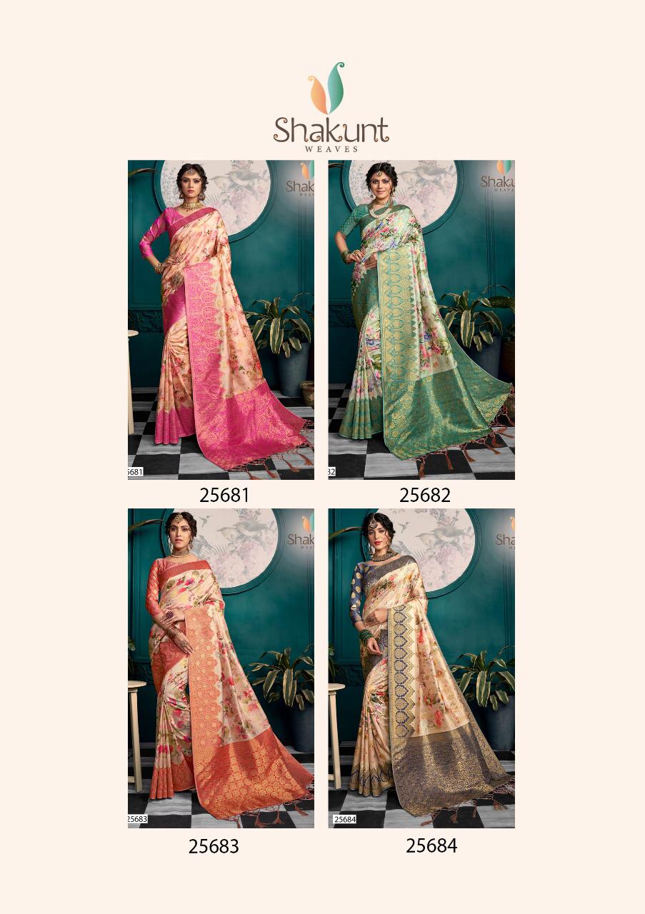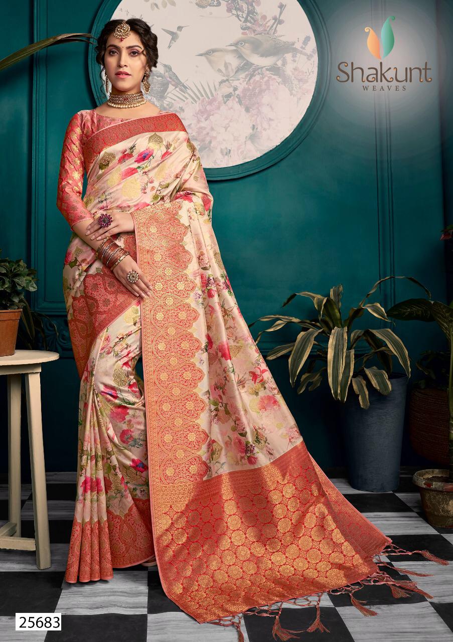 BRAND:SHAKUNT CATALOG:KOLAVERI RATE:1891 FABRIC:SILK WEAVING DIGITAL PRINT GOLDEN JARI PIECE:4 Set to set. GST 5 Percent Extra. Delivery from today |