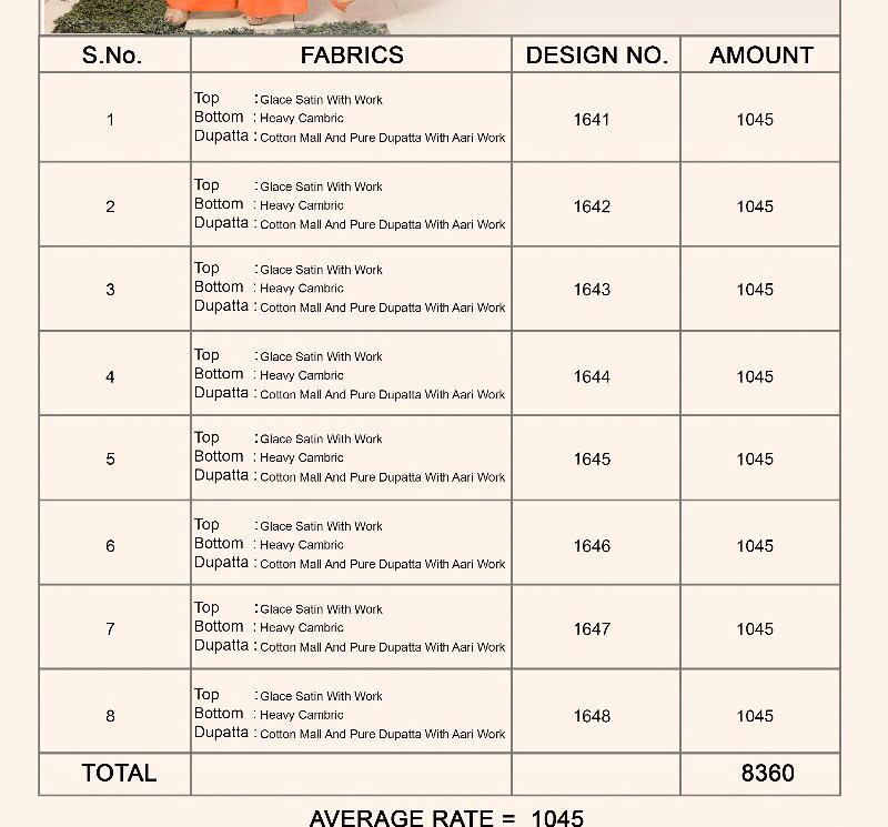 Buy Online Shalika Vol 35 By Shree Shalika Fashion 1641 Series Fancy Glace Satin Printed Salwar Kameez Catlog Wholesale Dealer And Supplier Surat 8 Pcs of Full Catalogue at Wholesale Price. Looking for Shalika Vol 35 By Shree Shalika Fashion 1641 Series Fancy Glace Satin Printed Salwar Kameez Catlog Wholesale Dealer And Supplier Surat Full Catalouge at Best Price? Buy Now Shalika Vol 35 By Shree Shalika Fashion 1641 Series Fancy Glace Satin Printed Salwar Kameez Catlog Wholesale Dealer And Supplier Surat at Wholesale Rate of Rs 8360 with Total 8 Pcs from authroized dealer and supplier of SHREE SHALIKA FASHION Brand. Cost of Each piece is just only Rs 1045 which is very low and affordable price to resale the product in your retail store ,This is Surat based Wholesale Supplier & Dealer of SHREE SHALIKA FASHION Brand. Click on Brand name to Know more about SHREE SHALIKA FASHION Brand's products.Call or Whatsapp on 9898838984 for booking or enquiry