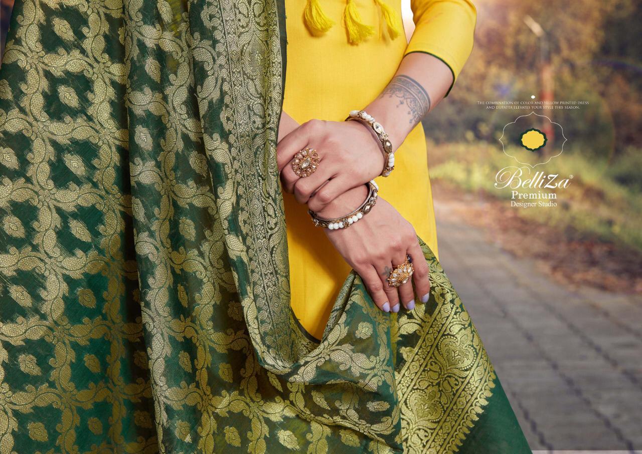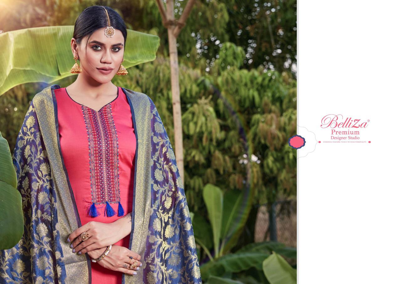 # SHAMIA # BANARASI DUPATTA # BELLIZA PREMIUM _*......BELLIZA......*_ PrEmium DesigNer StuDio _presents_ *"SHAMIA"* _...premium banarasi dupatta ..._ ?Top: 100% Pure Heavy Jam Cotton with Beautiful Fancy Embroidery work. (2.40 mtrs) ?Dupatta: Pure fancy banarasi dupatta. (2.30 mtr) ?Bottom: 100% Pure Jam Cotton. (2.80 mtrs apx) ?Pcs: 10 ? Rate: 795/- (Applicable GST extra) At Belliza Premium , Quality Fabrics with Exquisite Designs at Best Price is Our 'Cherished Legacy'. |