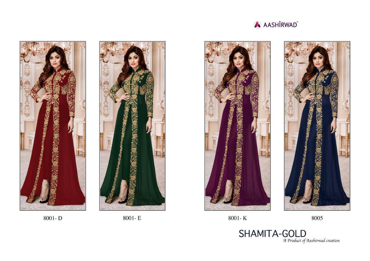 Shamita Gold By Aashirwad Series 8001 Designer Party Wear Suits Wholesale Supplier Gujarat