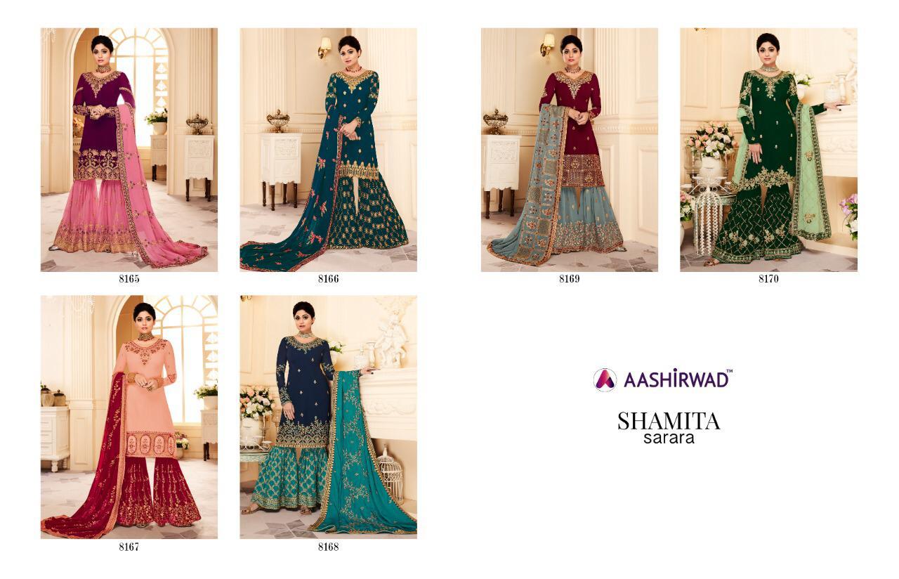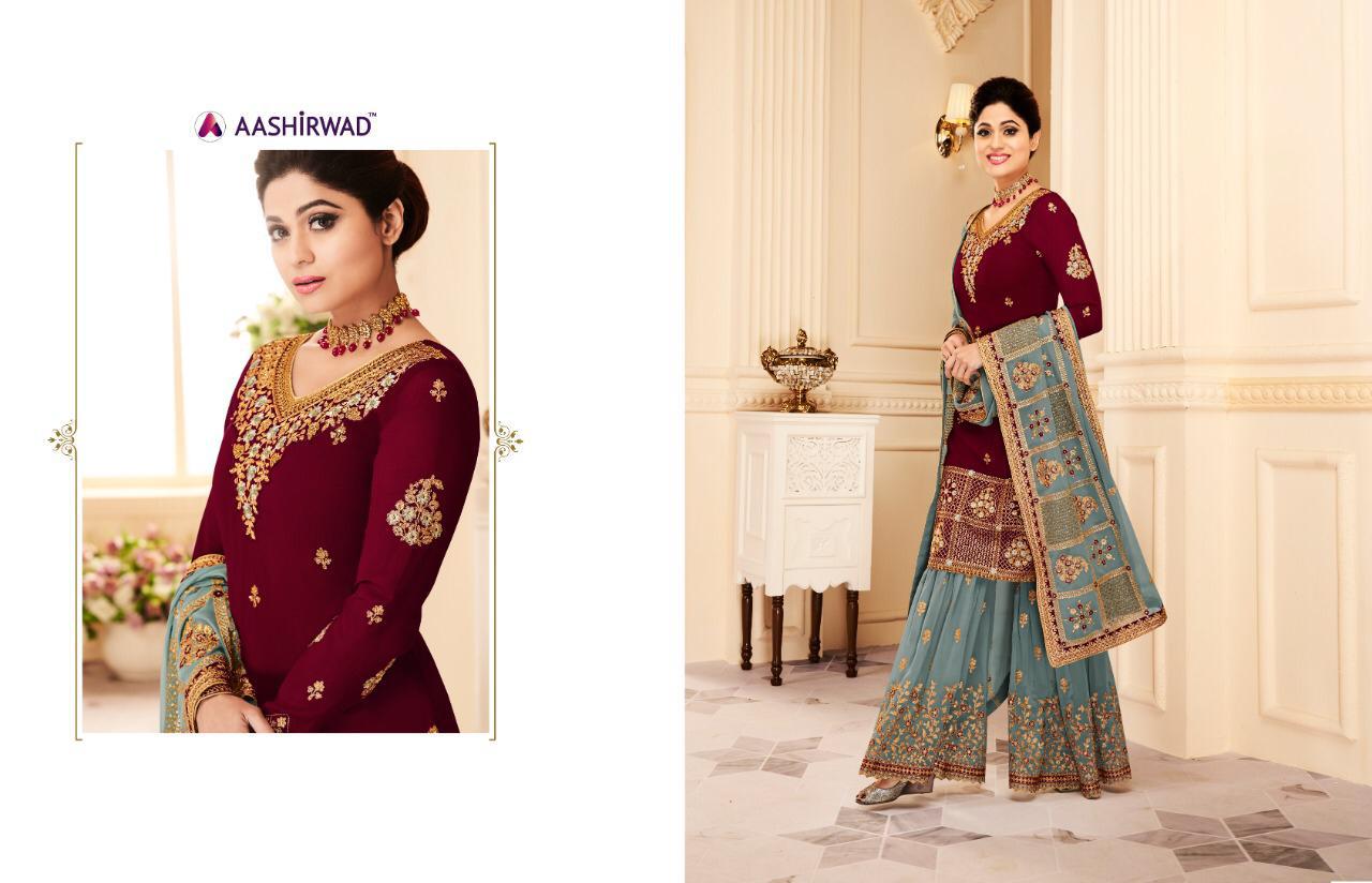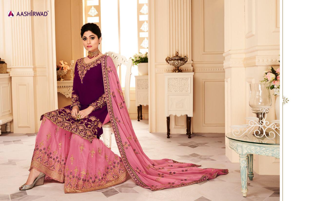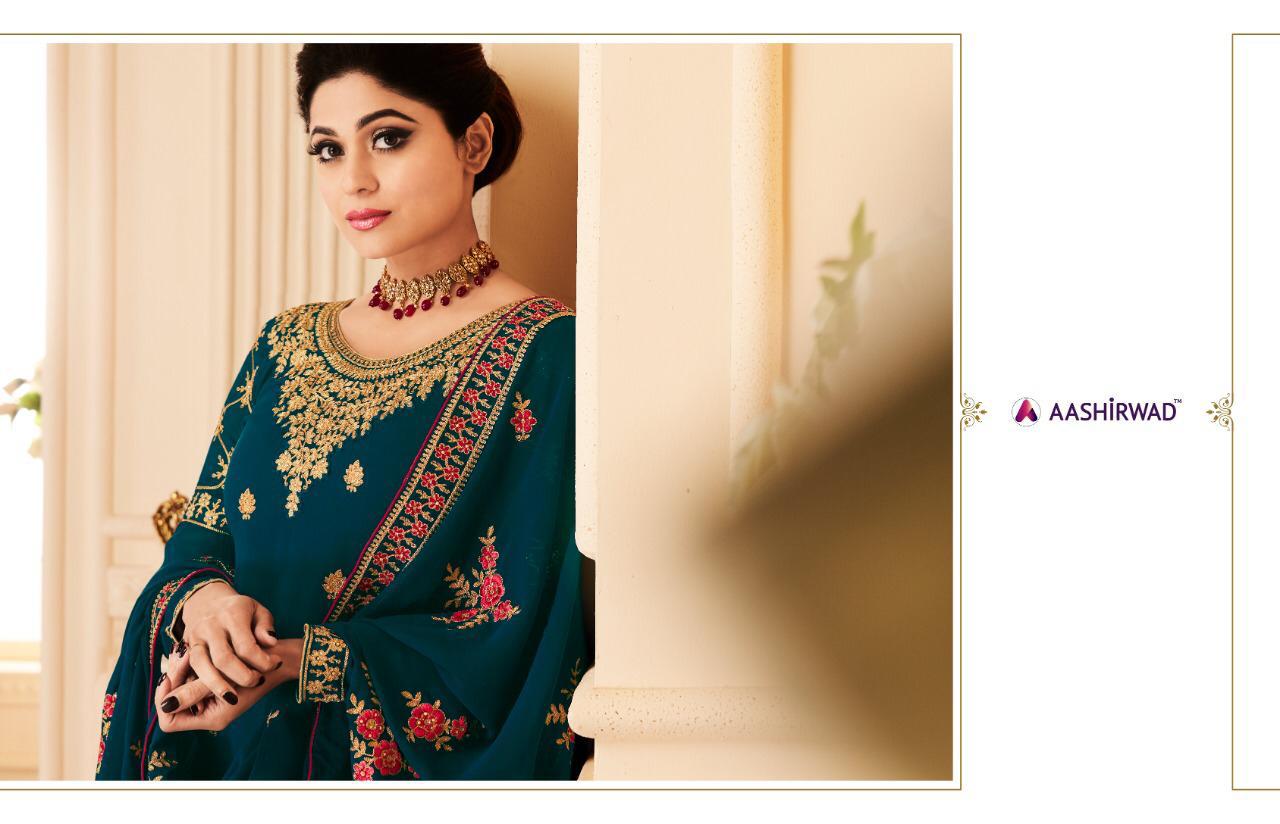 Buy Online Shamita Sarara By Ashirwad Real Georgette Designer Party Wear Suits Wholesale Supplier And Dealer Gujarat 6 Pcs of Full Catalogue at Wholesale Price. Looking for Shamita Sarara By Ashirwad Real Georgette Designer Party Wear Suits Wholesale Supplier And Dealer Gujarat Full Catalouge at Best Price? Buy Now Shamita Sarara By Ashirwad Real Georgette Designer Party Wear Suits Wholesale Supplier And Dealer Gujarat at Wholesale Rate of Rs 14970 with Total 6 Pcs from authroized dealer and supplier of AASHIRWAD Brand. Cost of Each piece is just only Rs 2495 which is very low and affordable price to resale the product in your retail store ,This is Surat based Wholesale Supplier & Dealer of AASHIRWAD Brand. Click on Brand name to Know more about AASHIRWAD Brand's products.Call or Whatsapp on 9898838984 for booking or enquiry