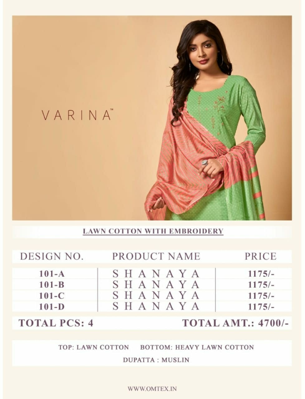 Buy Online Shanaya By Varina Wholesale Suppliers And Dealer From India 4 Pcs of Full Catalogue at Wholesale Price. Looking for Shanaya By Varina Wholesale Suppliers And Dealer From India Full Catalouge at Best Price? Buy Now Shanaya By Varina Wholesale Suppliers And Dealer From India at Wholesale Rate of Rs 4700 with Total 4 Pcs from authroized dealer and supplier of Brand. Cost of Each piece is just only Rs 1175 which is very low and affordable price to resale the product in your retail store ,This is Surat based Wholesale Supplier & Dealer of Brand. Click on Brand name to Know more about Brand's products.Call or Whatsapp on 9898838984 for booking or enquiry