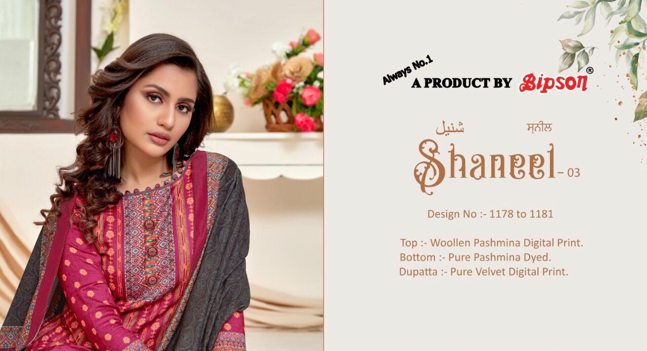 Buy Online Shaneel 3 By Bipson Dress Materials Wholesale Supplier And Dealer Gujarat 4 Pcs of Full Catalogue at Wholesale Price. Looking for Shaneel 3 By Bipson Dress Materials Wholesale Supplier And Dealer Gujarat Full Catalouge at Best Price? Buy Now Shaneel 3 By Bipson Dress Materials Wholesale Supplier And Dealer Gujarat at Wholesale Rate of Rs 3700 with Total 4 Pcs from authroized dealer and supplier of Brand. Cost of Each piece is just only Rs 925 which is very low and affordable price to resale the product in your retail store ,This is Surat based Wholesale Supplier & Dealer of Brand. Click on Brand name to Know more about Brand's products.Call or Whatsapp on 9898838984 for booking or enquiry
