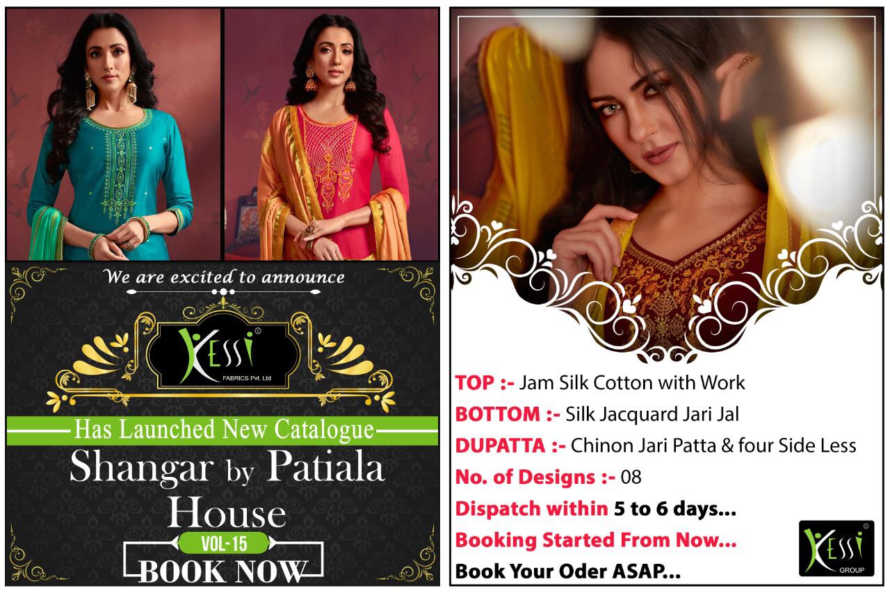 Buy Online Shangar By Patiala House Vol 15 By Kessi Fabric Jam Silk Dress Materials Wholesale Supplier Surat 8 Pcs of Full Catalogue at Wholesale Price. Looking for Shangar By Patiala House Vol 15 By Kessi Fabric Jam Silk Dress Materials Wholesale Supplier Surat Full Catalouge at Best Price? Buy Now Shangar By Patiala House Vol 15 By Kessi Fabric Jam Silk Dress Materials Wholesale Supplier Surat at Wholesale Rate of Rs 7192 with Total 8 Pcs from authroized dealer and supplier of KESSI Brand. Cost of Each piece is just only Rs 899 which is very low and affordable price to resale the product in your retail store ,This is Surat based Wholesale Supplier & Dealer of KESSI Brand. Click on Brand name to Know more about KESSI Brand's products.Call or Whatsapp on 9898838984 for booking or enquiry
