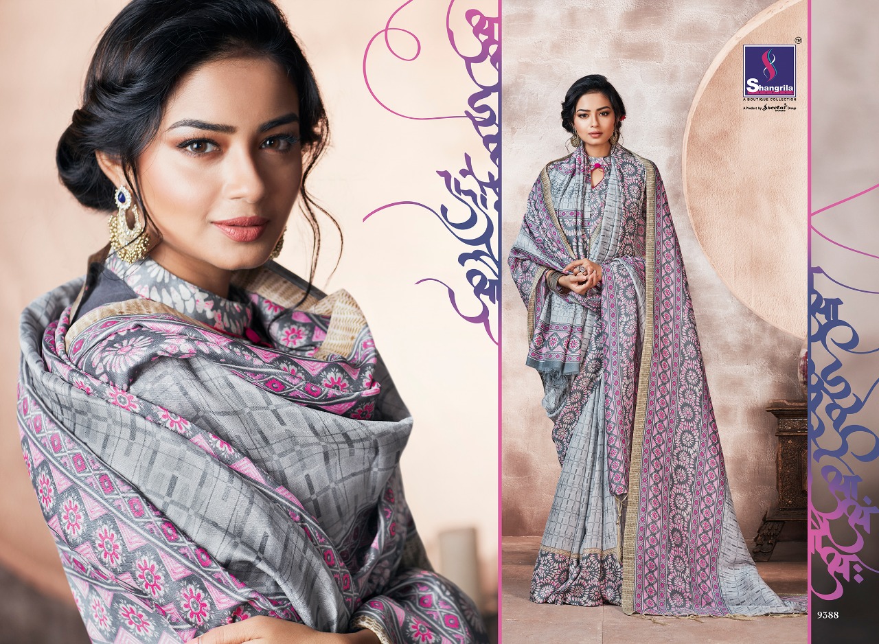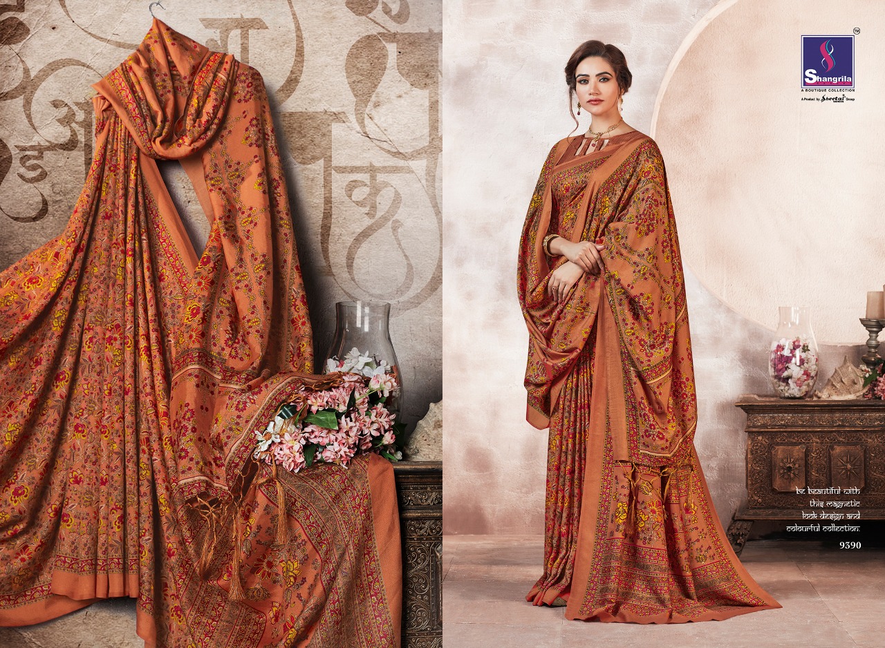 Buy Online Shangrila Fine Pashmina Sareea With Shawl Collections Wholesale Supplier Surat 12 Pcs of Full Catalogue at Wholesale Price. Looking for Shangrila Fine Pashmina Sareea With Shawl Collections Wholesale Supplier Surat Full Catalouge at Best Price? Buy Now Shangrila Fine Pashmina Sareea With Shawl Collections Wholesale Supplier Surat at Wholesale Rate of Rs 9300 with Total 12 Pcs from authroized dealer and supplier of SHANGRILA Brand. Cost of Each piece is just only Rs 775 which is very low and affordable price to resale the product in your retail store ,This is Surat based Wholesale Supplier & Dealer of SHANGRILA Brand. Click on Brand name to Know more about SHANGRILA Brand's products.Call or Whatsapp on 9898838984 for booking or enquiry
