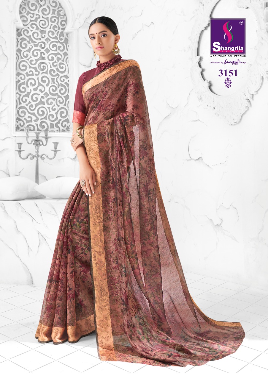 Shangrila Meenakshi Cotton 3151 Series Linen Cotton Saree Catlog Wholesale Dealer And Supplier Surat