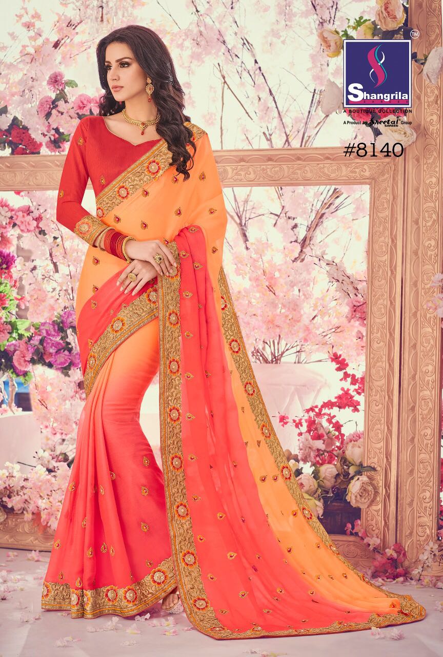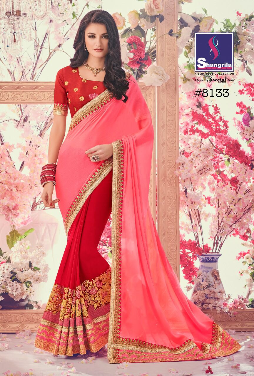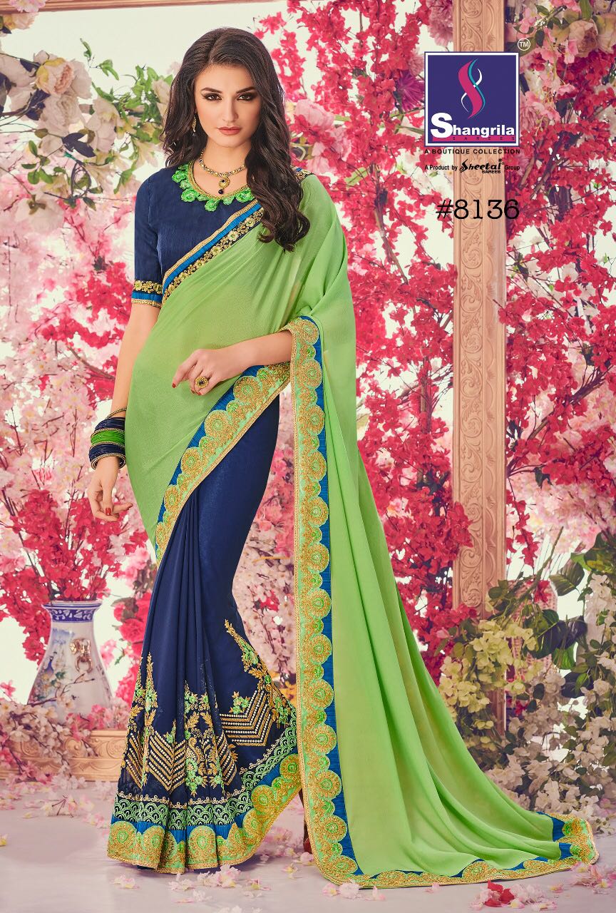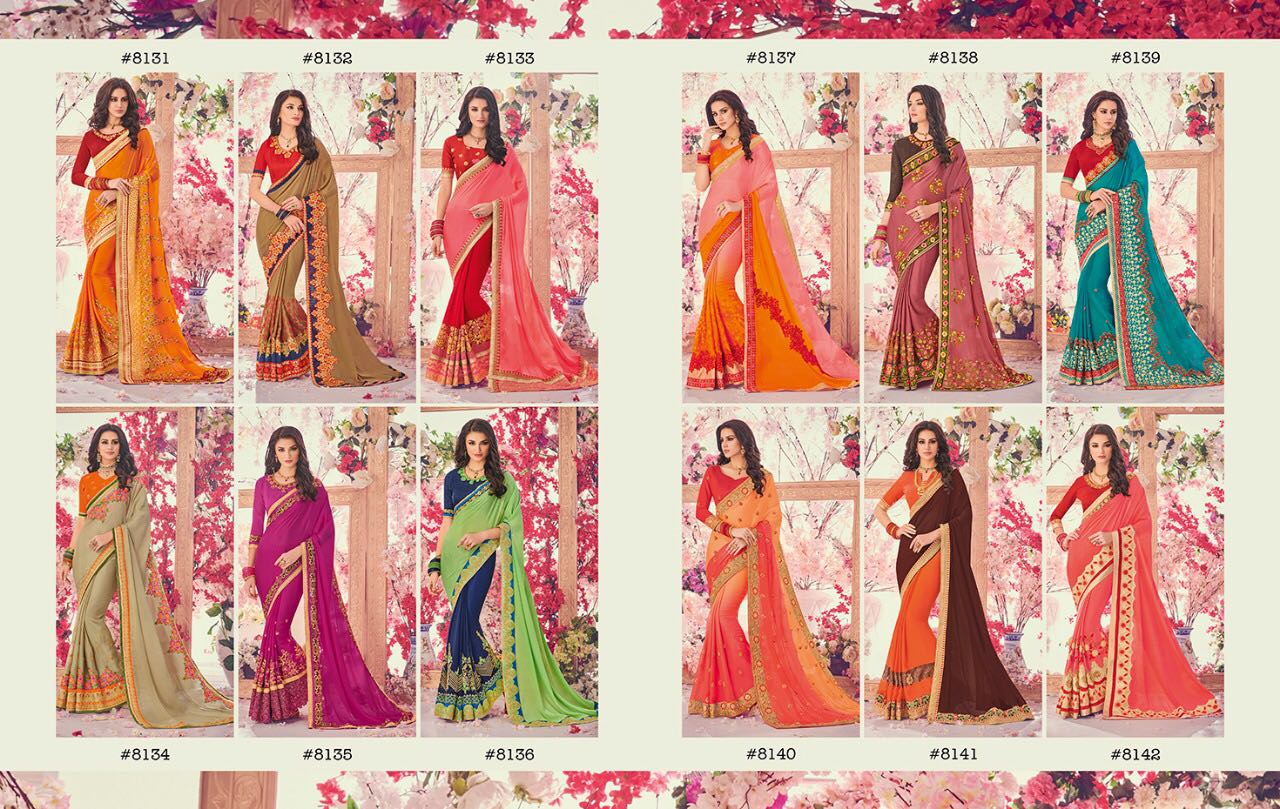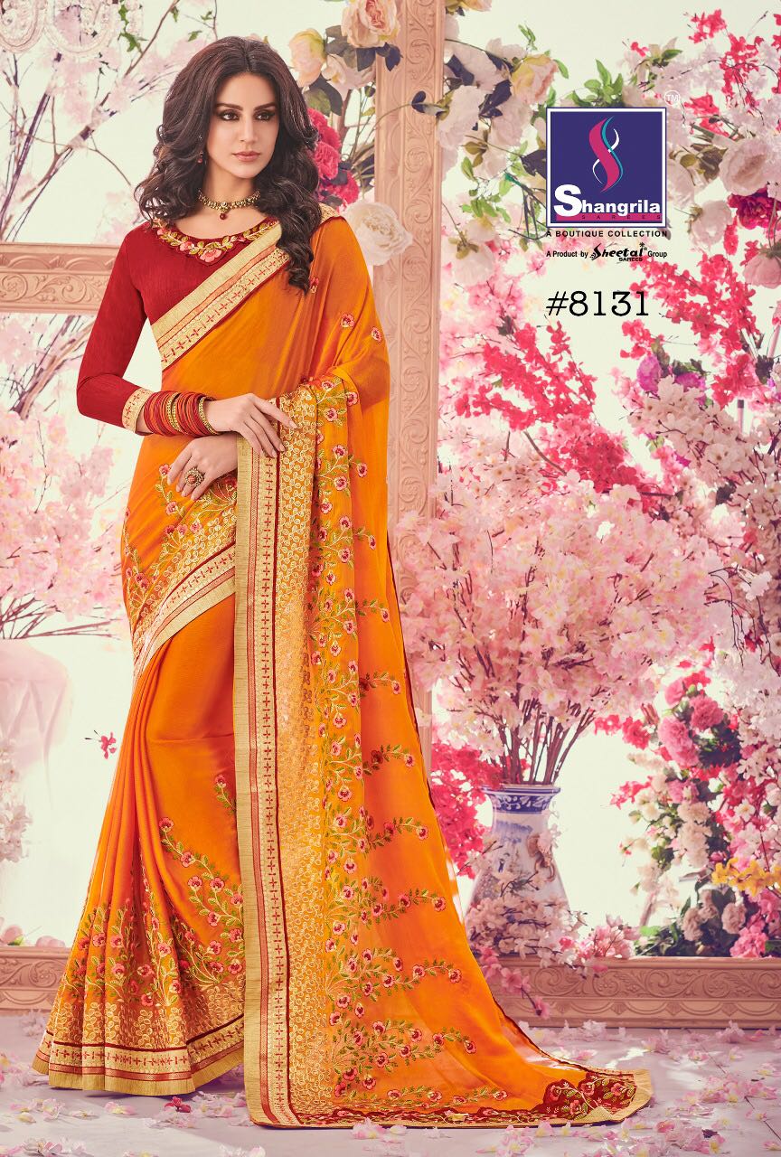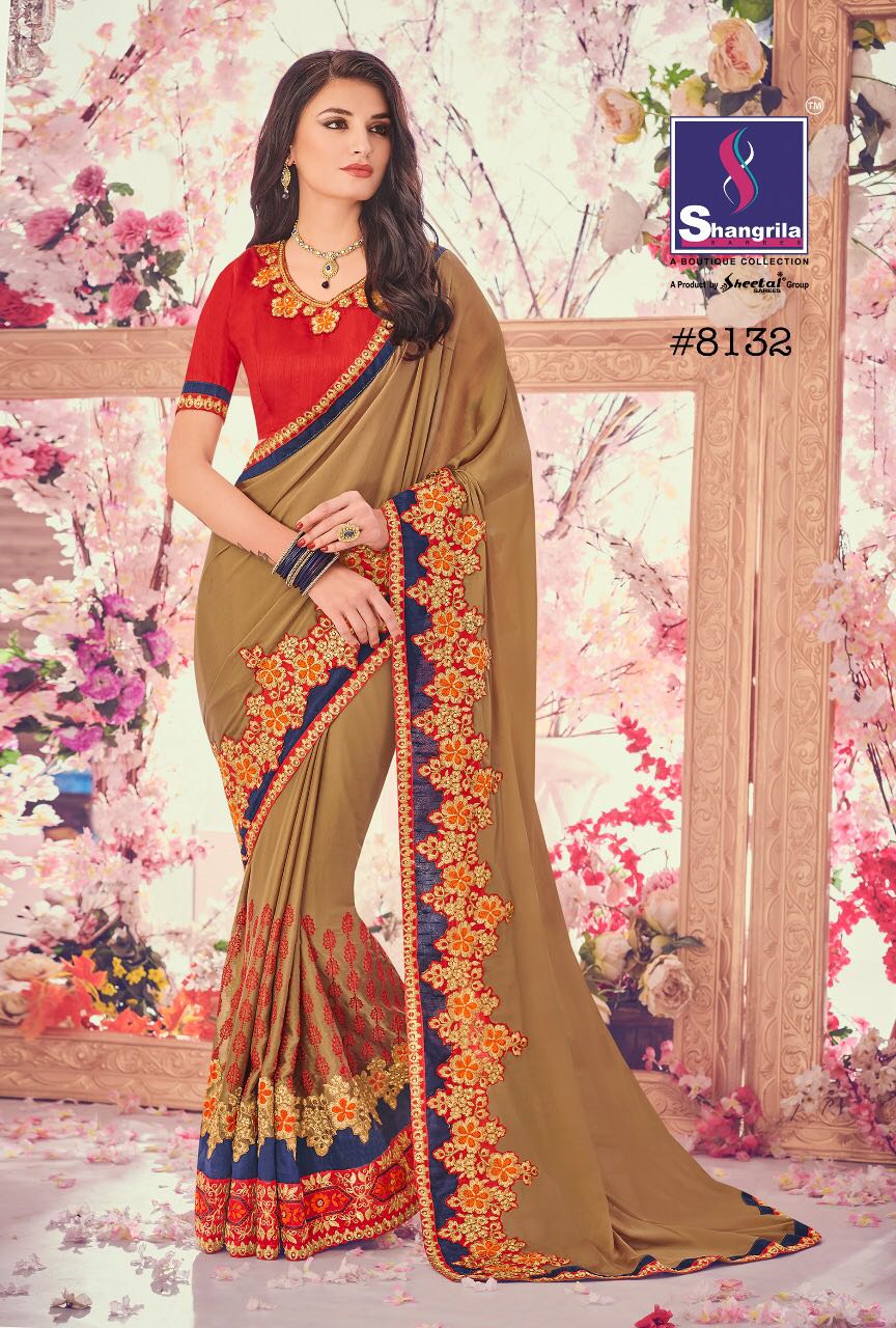 Buy Online Shangrila Paradise 8131 To 8142 Series Fancyparty Wear Saree 12 Pcs of Full Catalogue at Wholesale Price. Looking for Shangrila Paradise 8131 To 8142 Series Fancyparty Wear Saree Full Catalouge at Best Price? Buy Now Shangrila Paradise 8131 To 8142 Series Fancyparty Wear Saree at Wholesale Rate of Rs 13800 with Total 12 Pcs from authroized dealer and supplier of SHANGRILA Brand. Cost of Each piece is just only Rs 1150 which is very low and affordable price to resale the product in your retail store ,This is Surat based Wholesale Supplier & Dealer of SHANGRILA Brand. Click on Brand name to Know more about SHANGRILA Brand's products.Call or Whatsapp on 9898838984 for booking or enquiry