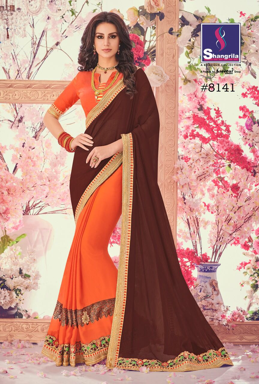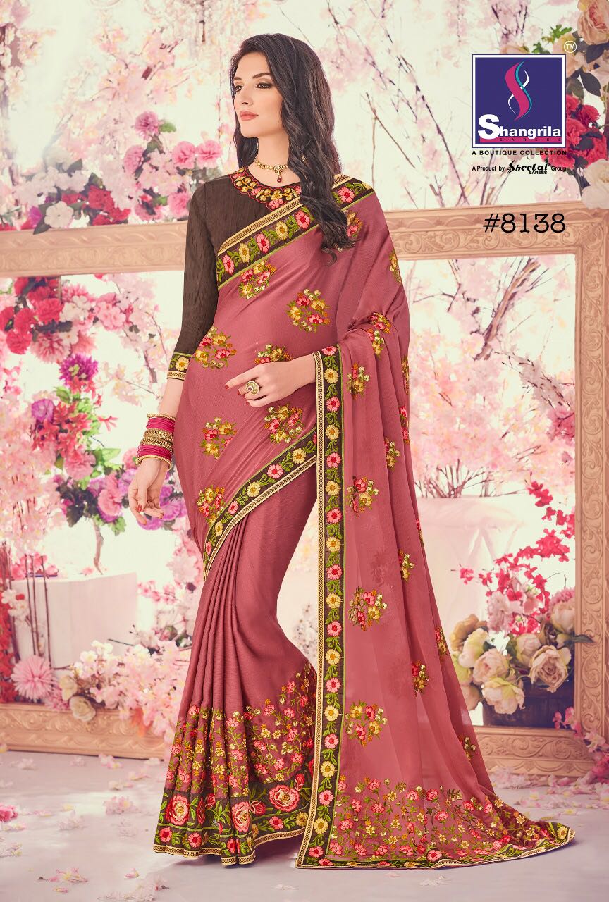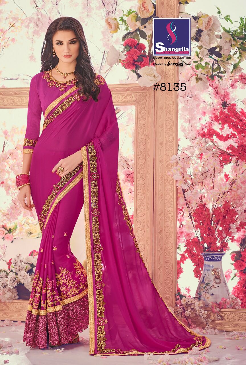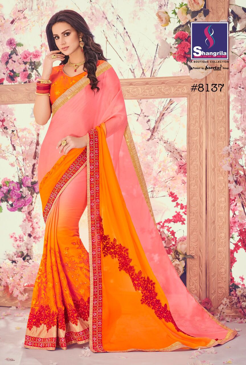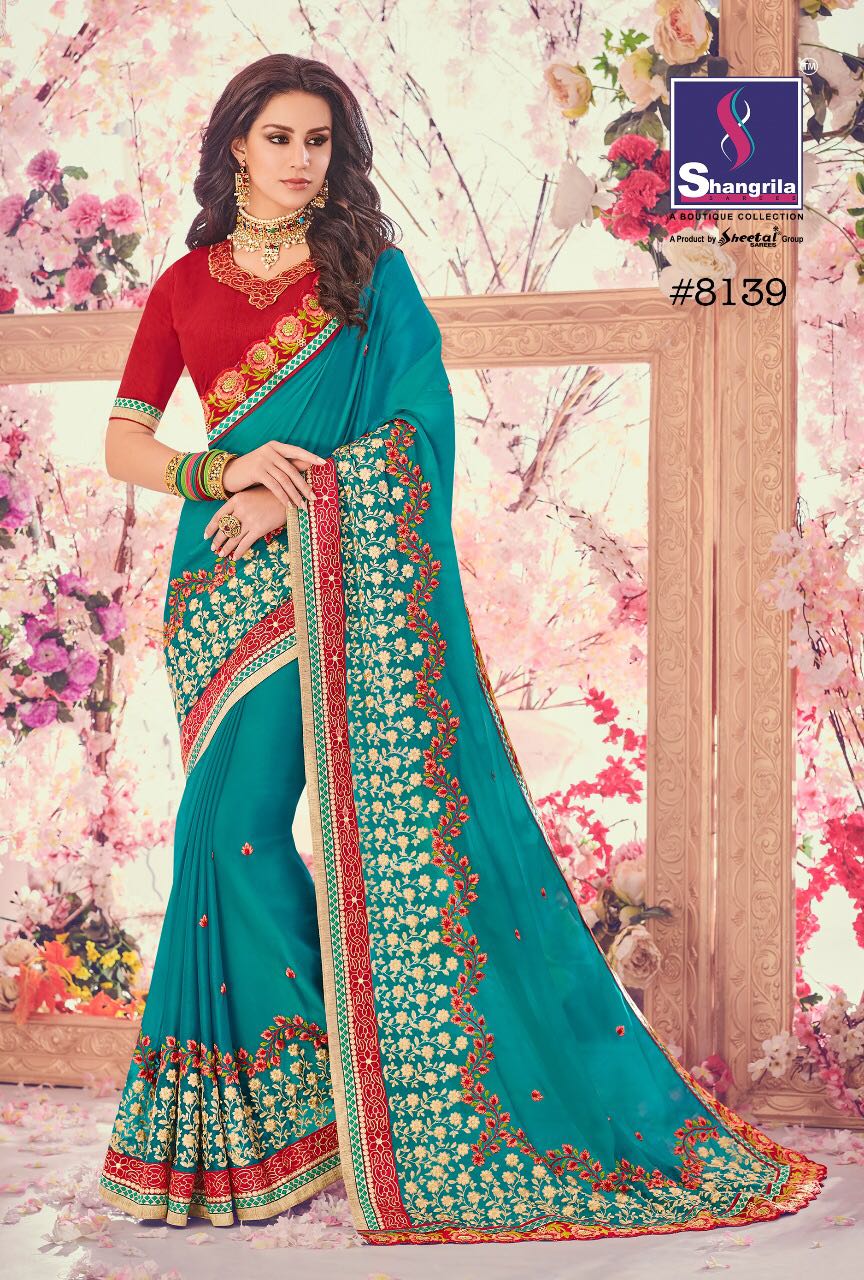 Buy Online Shangrila Paradise 8131 To 8142 Series Fancyparty Wear Saree 12 Pcs of Full Catalogue at Wholesale Price. Looking for Shangrila Paradise 8131 To 8142 Series Fancyparty Wear Saree Full Catalouge at Best Price? Buy Now Shangrila Paradise 8131 To 8142 Series Fancyparty Wear Saree at Wholesale Rate of Rs 13800 with Total 12 Pcs from authroized dealer and supplier of SHANGRILA Brand. Cost of Each piece is just only Rs 1150 which is very low and affordable price to resale the product in your retail store ,This is Surat based Wholesale Supplier & Dealer of SHANGRILA Brand. Click on Brand name to Know more about SHANGRILA Brand's products.Call or Whatsapp on 9898838984 for booking or enquiry