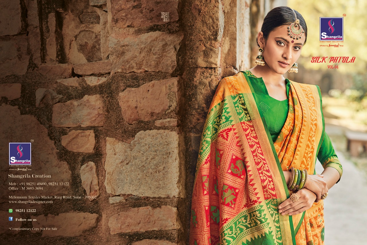 Shangrila Silk Patola Vol 4 10556 Series Designer Silk Saree Catlog Wholesale Dealer Surat