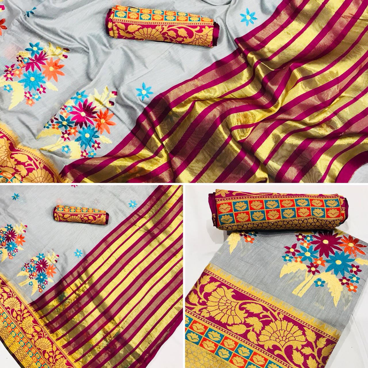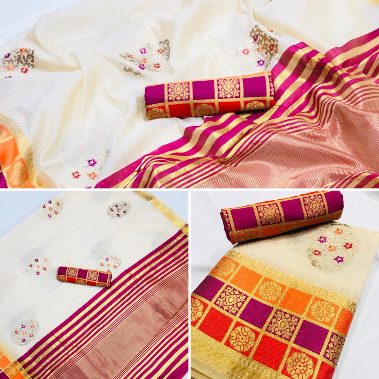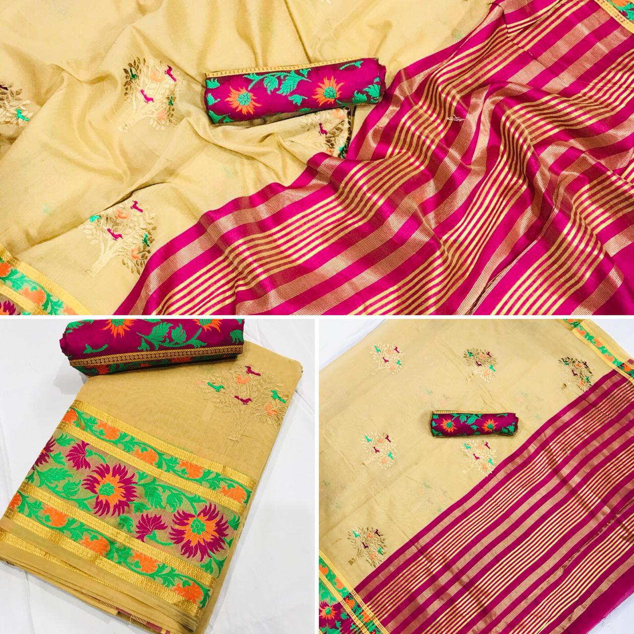 Vidhya Cotton Shangrila New Launch Rich Silk Weaving Saree With Pure Kalamkari Thread Work...! 12 pc 12 design 760/- |