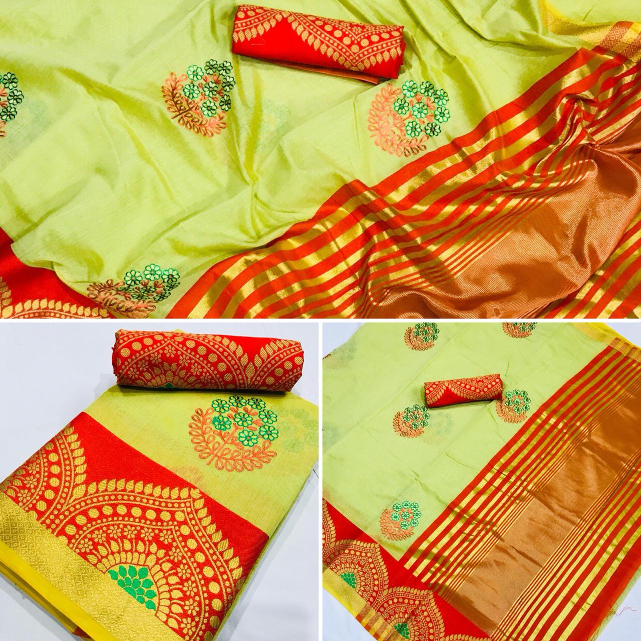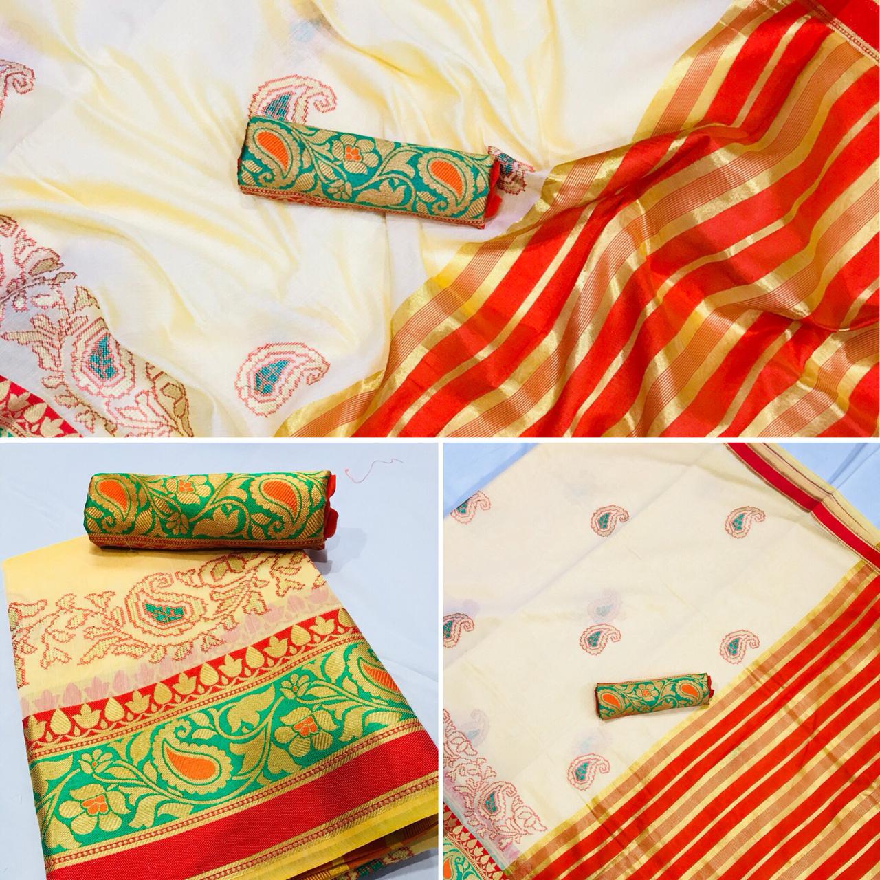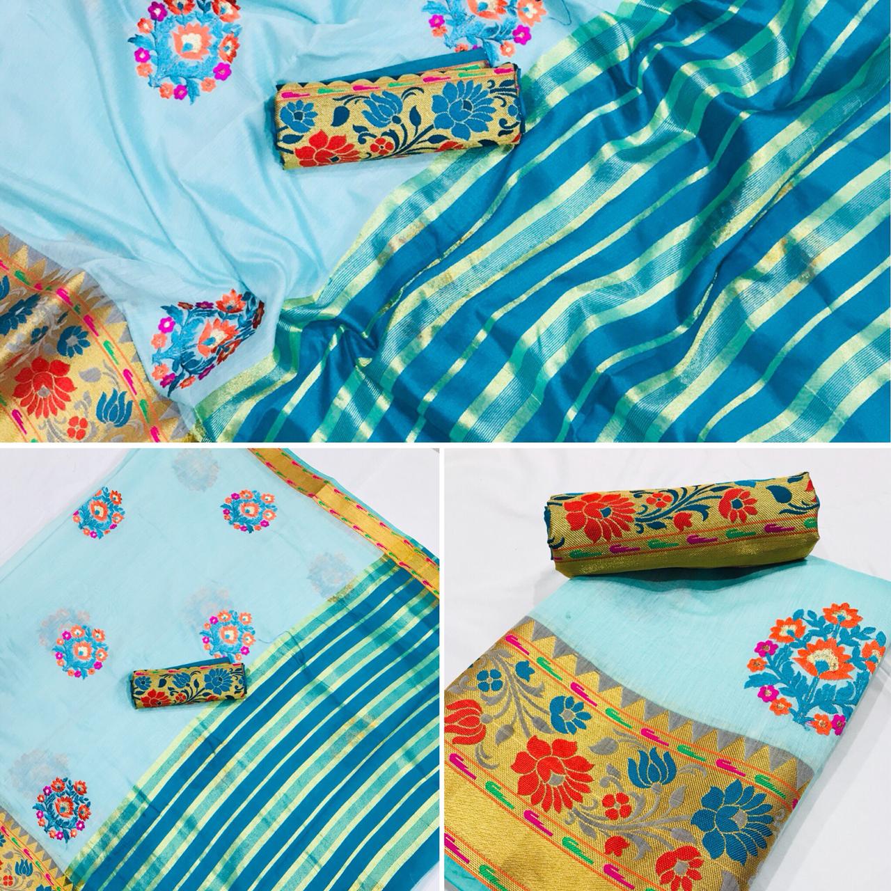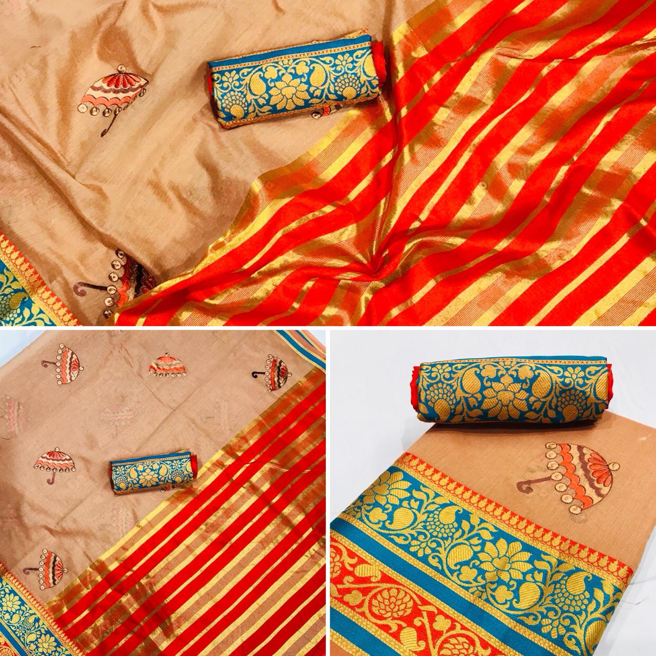 Vidhya Cotton Shangrila New Launch Rich Silk Weaving Saree With Pure Kalamkari Thread Work...! 12 pc 12 design 760/- |