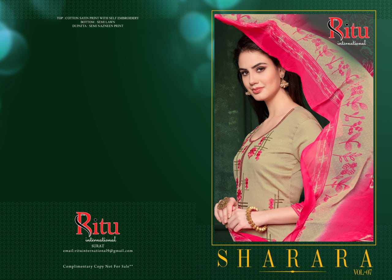 Sharara Vol 7 By Ritu 7001 Series Fancy Pure Cotton Satin Salwar Kameez Catlog Wholesale Dealer Surat