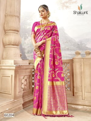 Brand - SHAKUNT Type - saree. Catlog name -Sharda Rate -1068/- per pcs . Set To Set. GST 5 Percent Extra. silk Fabric Delivery 3-4 days . |